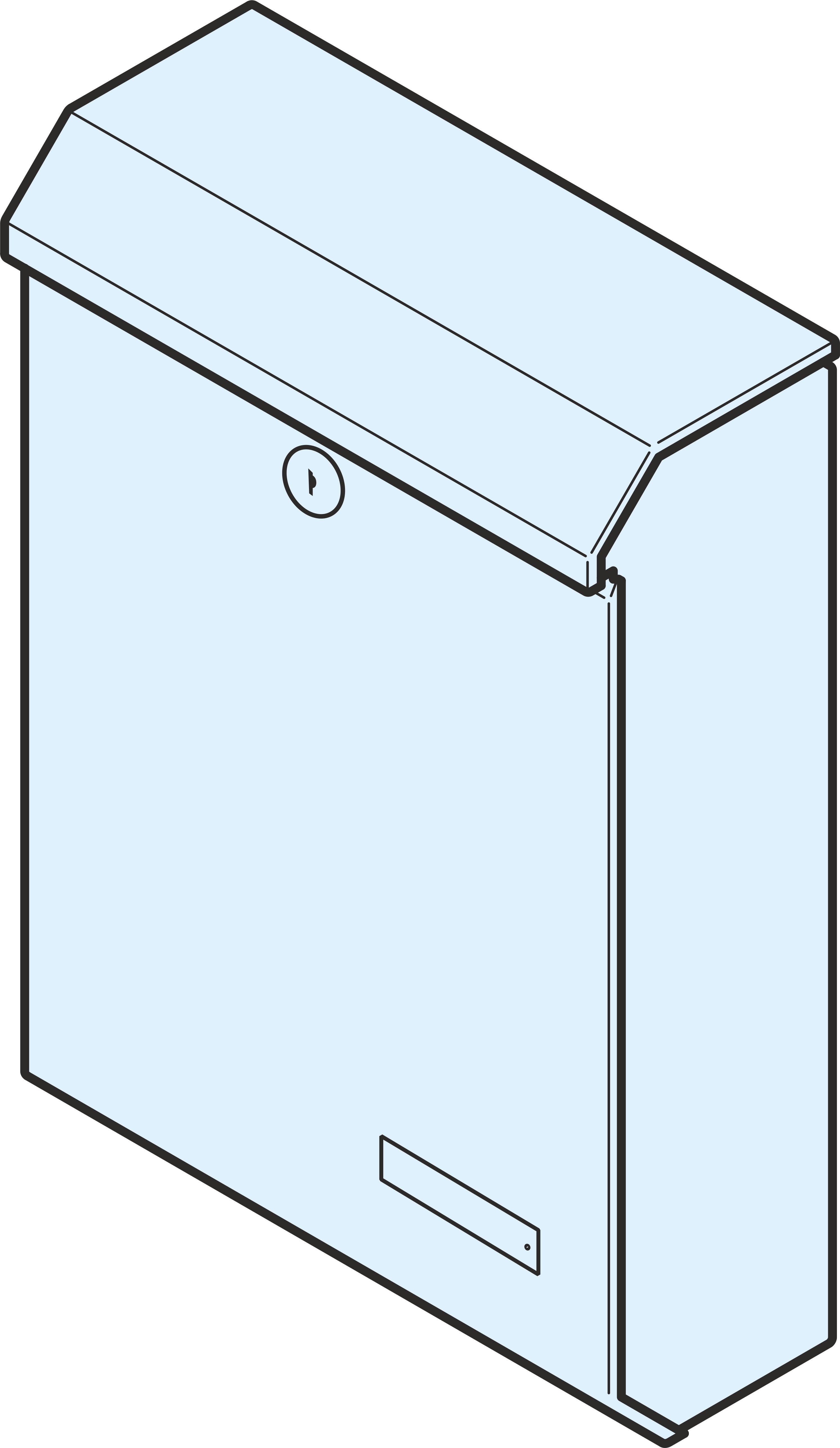 Der Renz-Aufhängebriefkasten canto nimmt mit seinem Fassungsvermögen von 12 Litern die alltägliche Post auf. Zeitungen finden in der dazu erhältlichen Zeitungsbox Platz. Das RSA2-Namensschild ist vandalismusgeschützt und aus Aluminium. Der Einwurf ist oben, die Entnahme der Post geschieht über die Kipptür. Der Briefkasten canto von Renz ist in über 200 RAL-Farben in hochwertiger Pulverbeschichtung sowie in verschiedenen Eloxaltönen und aus Edelstahl V4A erhältlich.