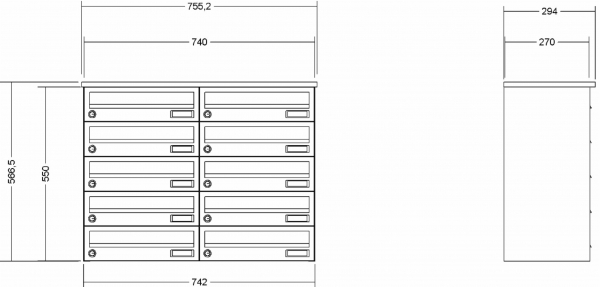 LEABOX - Briefkastenanlage mit LEA 3 Verkleidung inkl. Dachüberstand