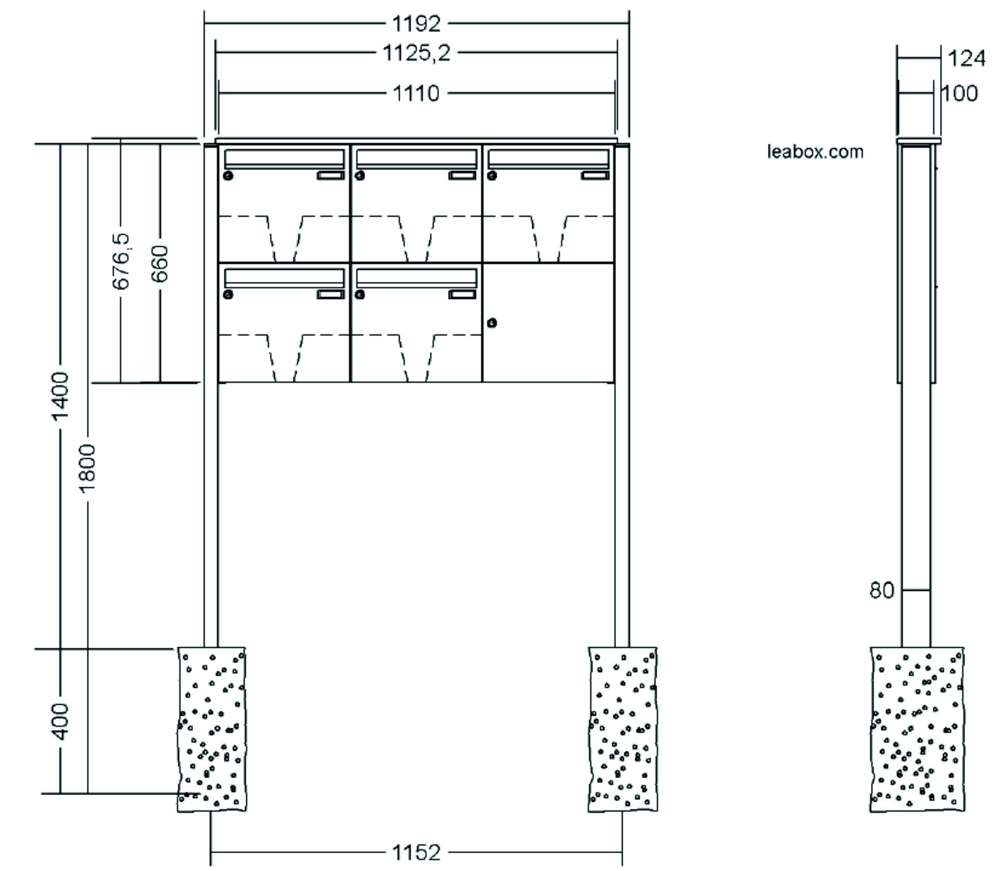 LEABOX - Briefkastenanlage mit LEA 3 Verkleidung inkl. Dachüberstand und rückseitiger Verkleidung und Rechteckrohrständer