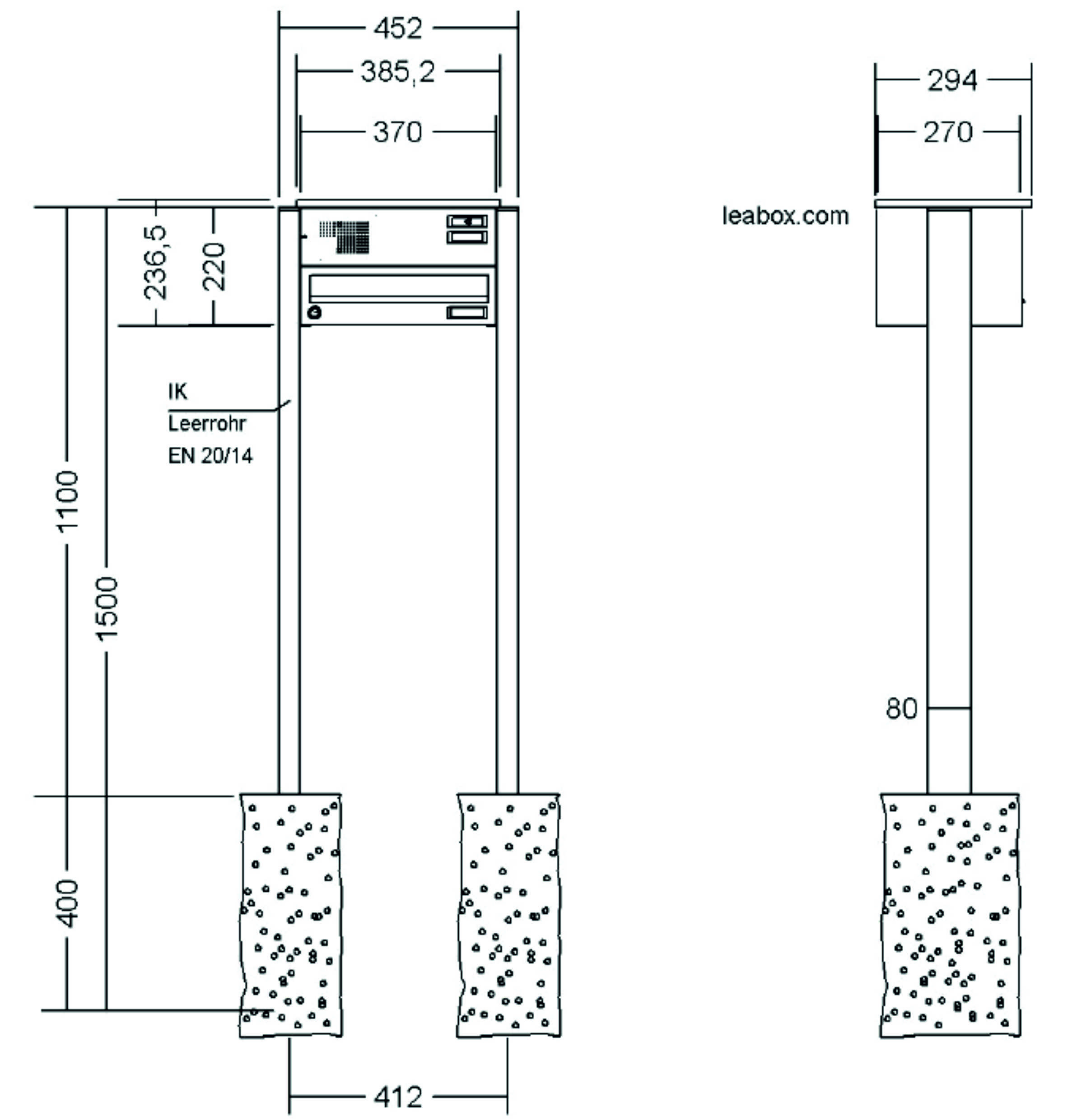 LEABOX - Briefkastenanlage mit LEA 3 Verkleidung inkl. Dachüberstand und rückseitiger Verkleidung und Rechteckrohrständer