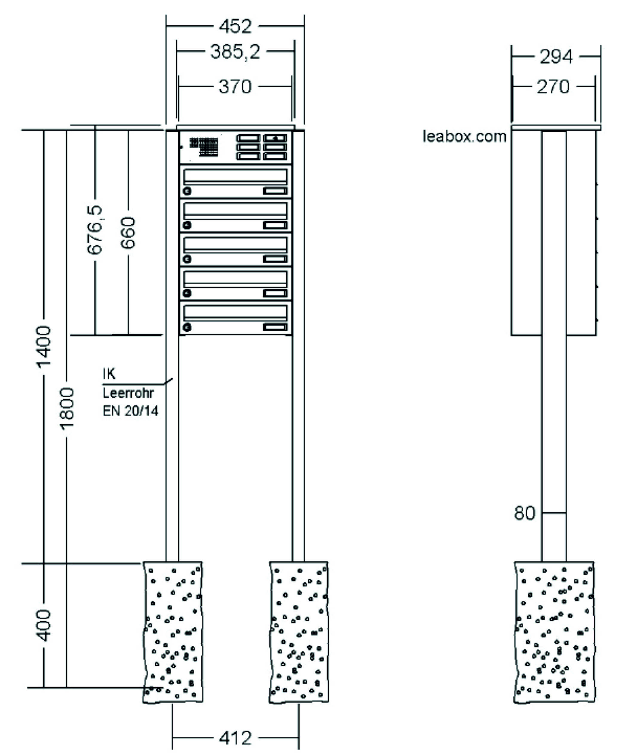 LEABOX - Briefkastenanlage mit LEA 3 Verkleidung inkl. Dachüberstand und rückseitiger Verkleidung und Rechteckrohrständer