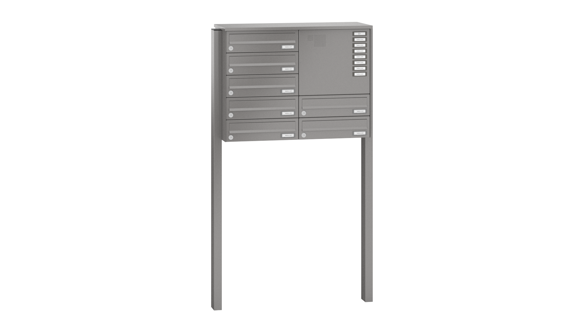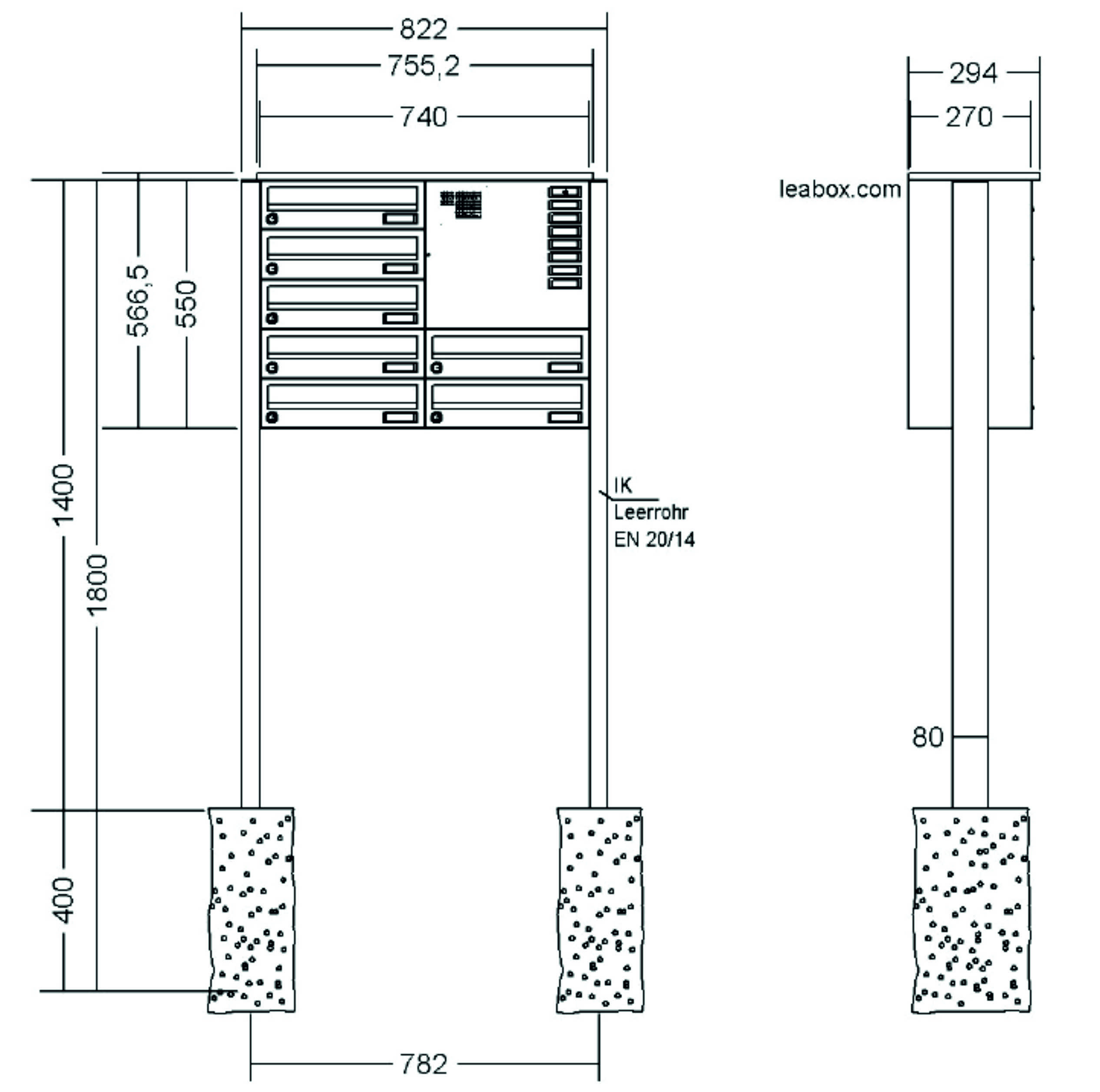 LEABOX - Briefkastenanlage mit LEA 3 Verkleidung inkl. Dachüberstand und rückseitiger Verkleidung und Rechteckrohrständer