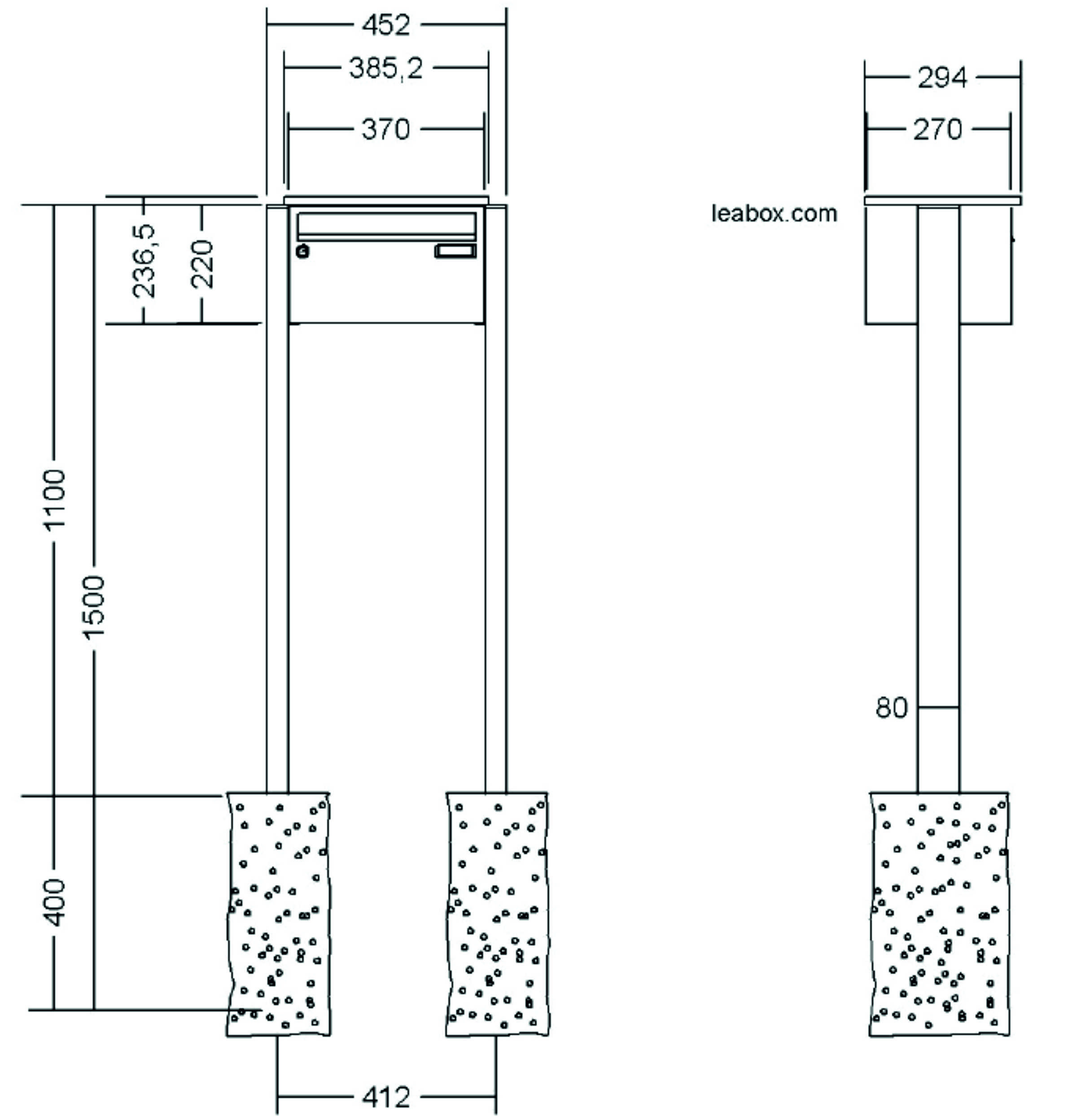 LEABOX - Briefkastenanlage mit LEA 3 Verkleidung inkl. Dachüberstand und rückseitiger Verkleidung und Rechteckrohrständer