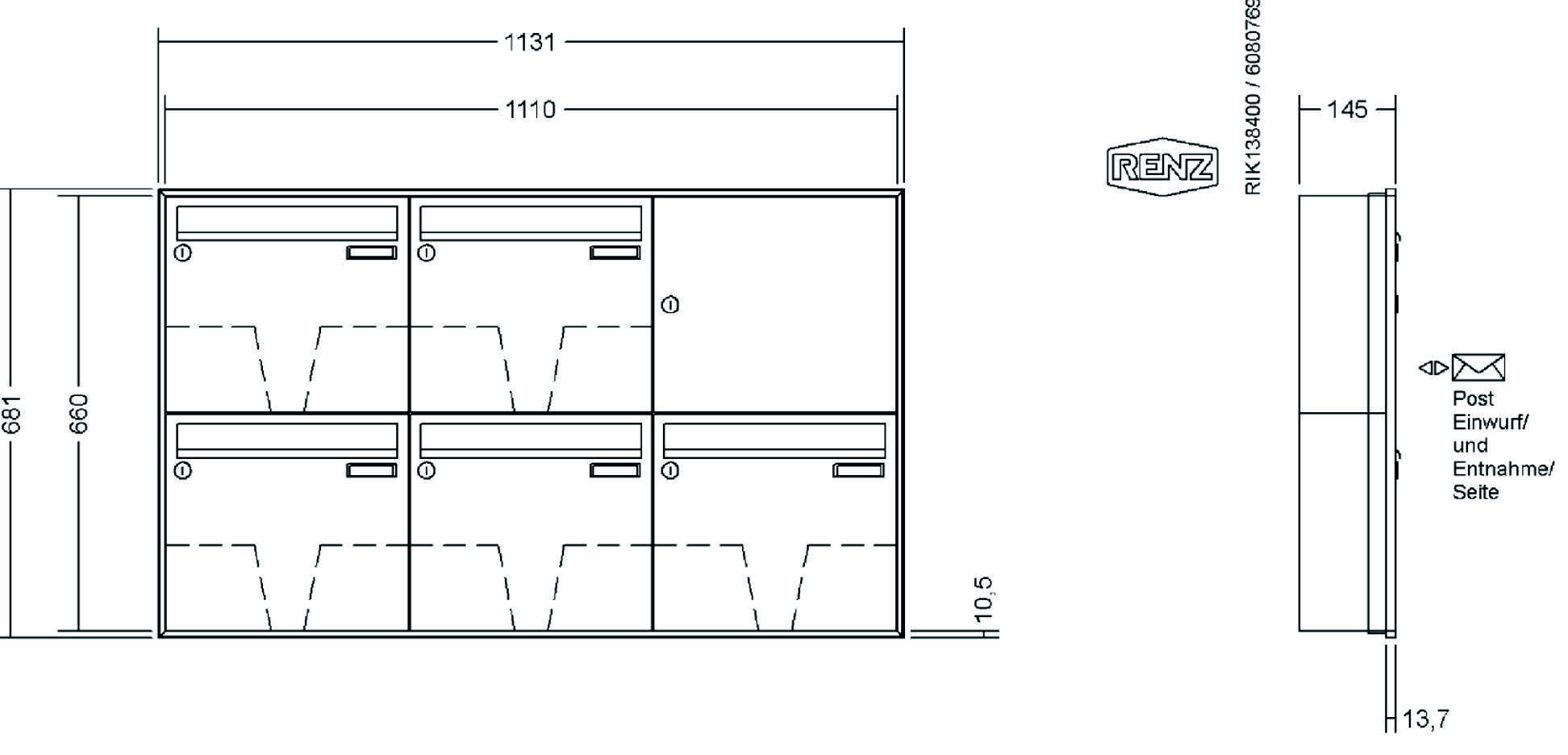 RENZ - Unterputz-Briefkastenanlage mit Schattenfugenrahmen