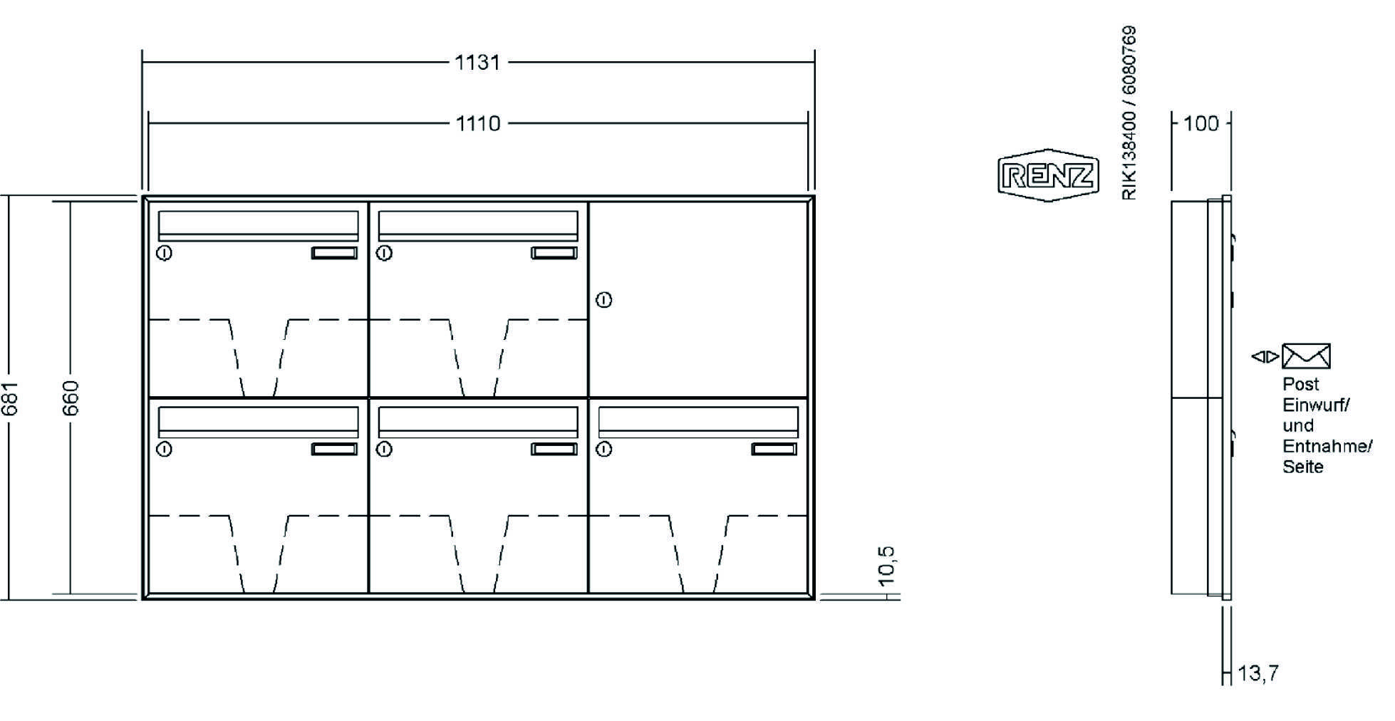 RENZ - Unterputz-Briefkastenanlage mit Schattenfugenrahmen