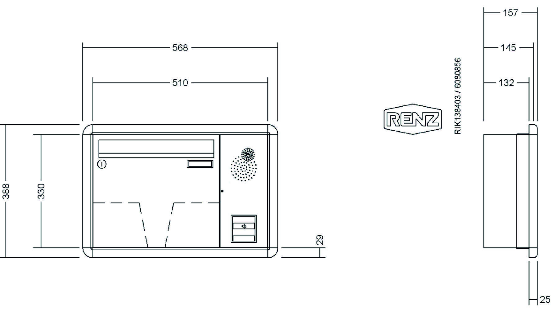 RENZ - Unterputz-Briefkastenanlage mit RS3000 Putzabdeckrahmenprofil