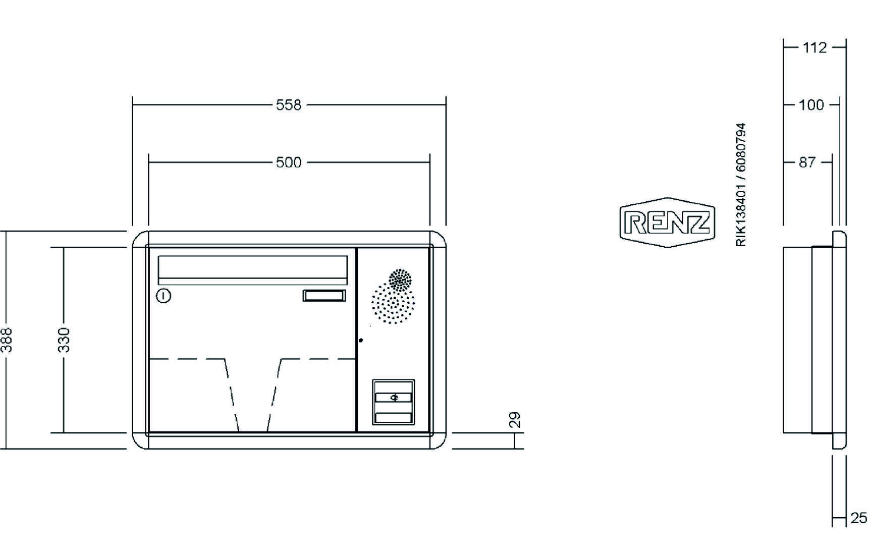 RENZ - Unterputz-Briefkastenanlage mit RS3000 Putzabdeckrahmenprofil
