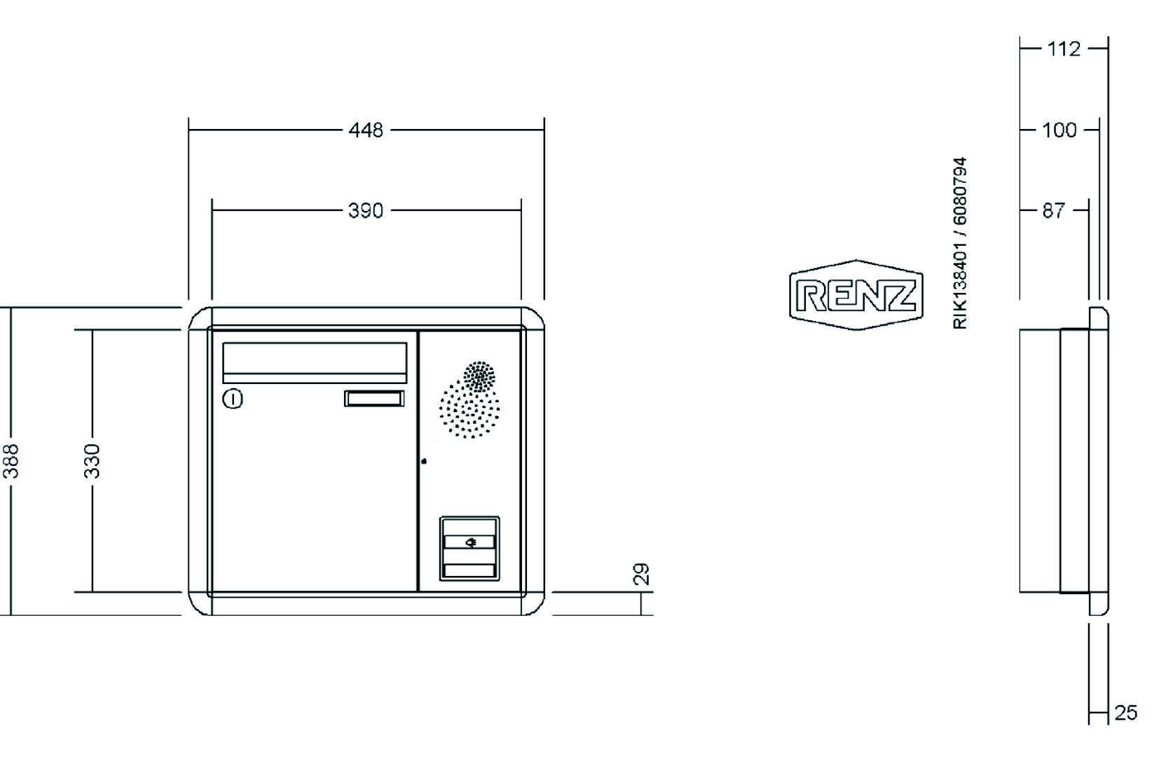 RENZ - Unterputz-Briefkastenanlage mit RS3000 Putzabdeckrahmenprofil