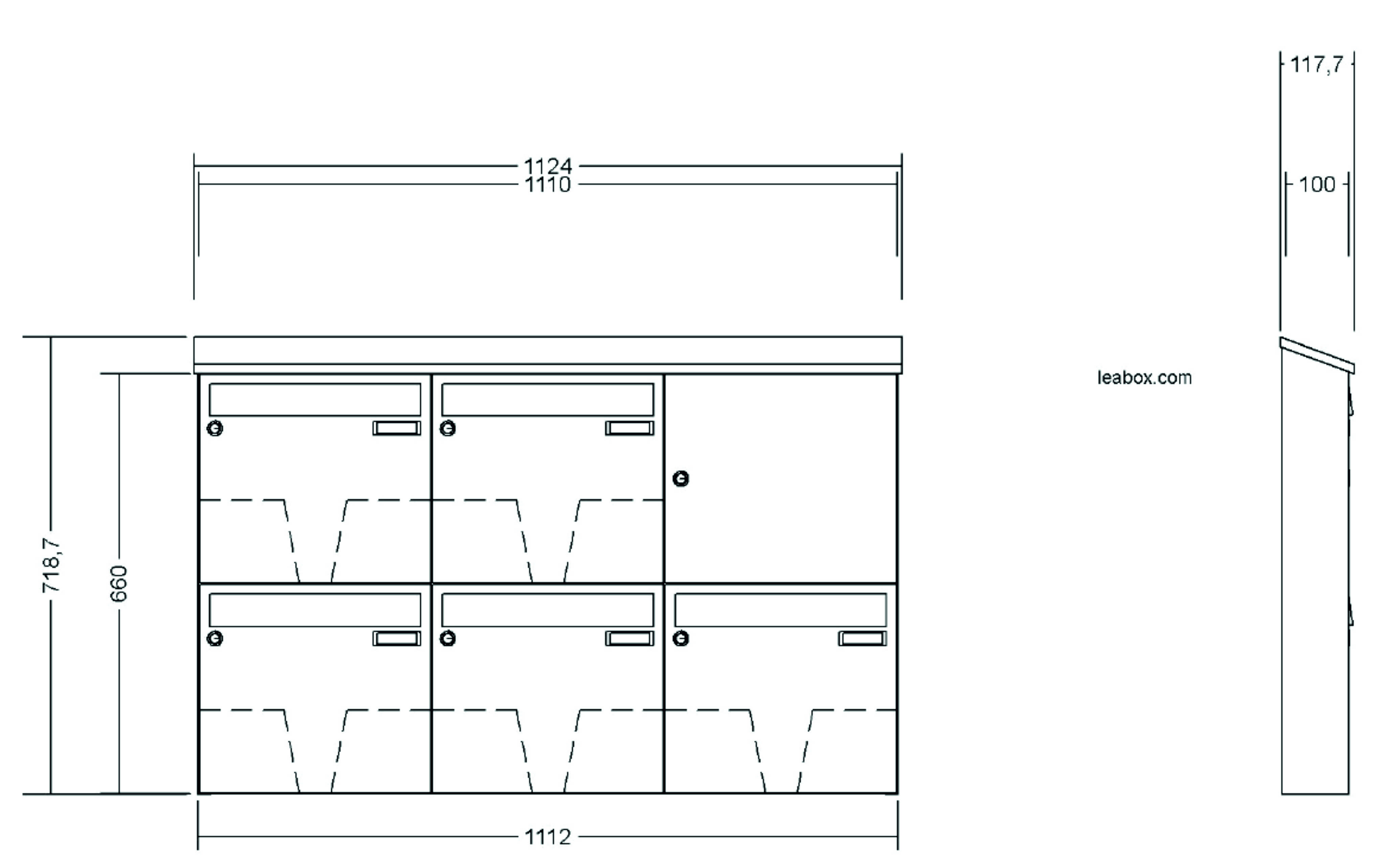 LEABOX - Edelstahl Briefkastenanlage mit LEA 20 Verkleidung inkl. Dachüberstand