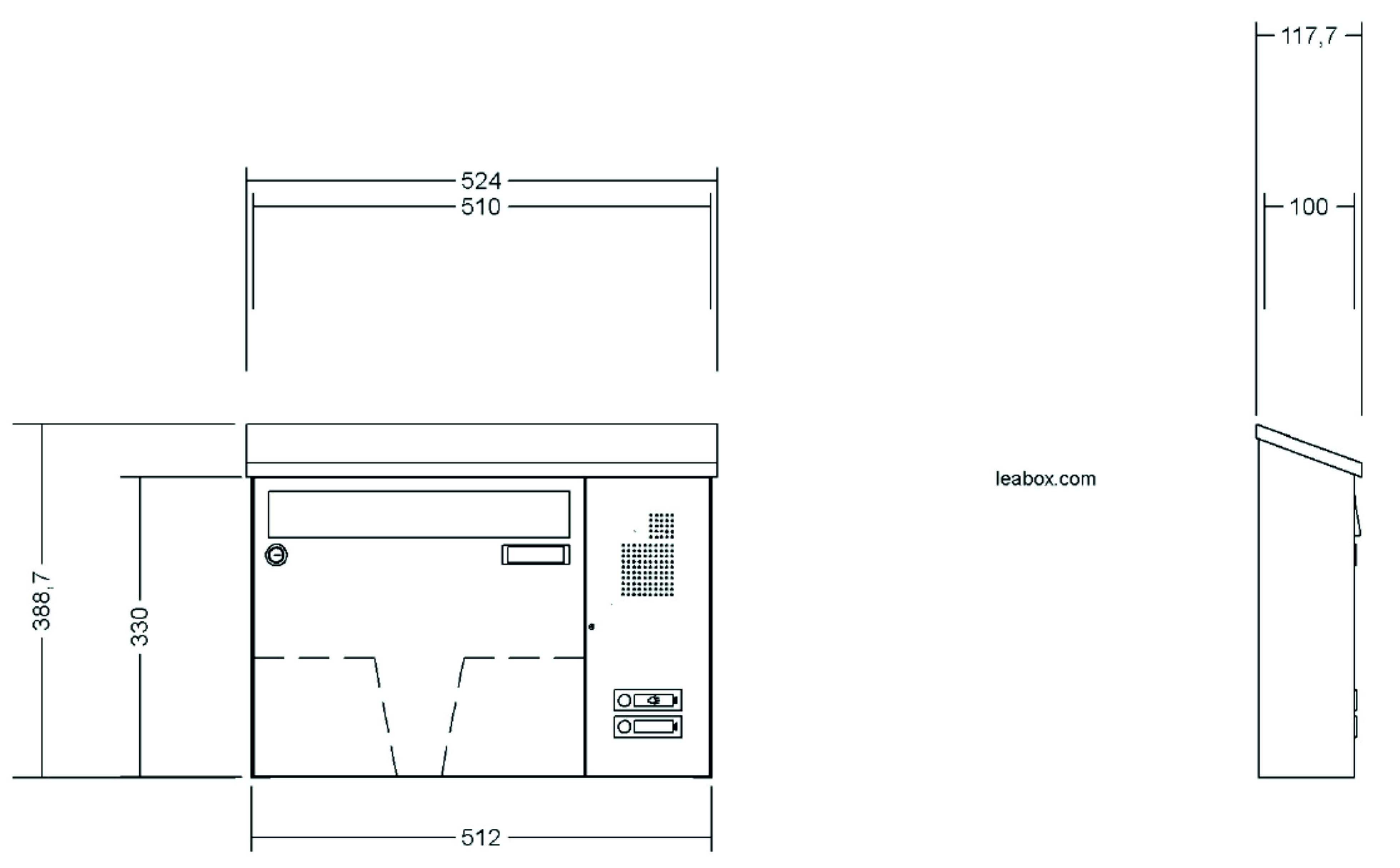 LEABOX - Edelstahl Briefkastenanlage mit LEA 20 Verkleidung inkl. Dachüberstand
