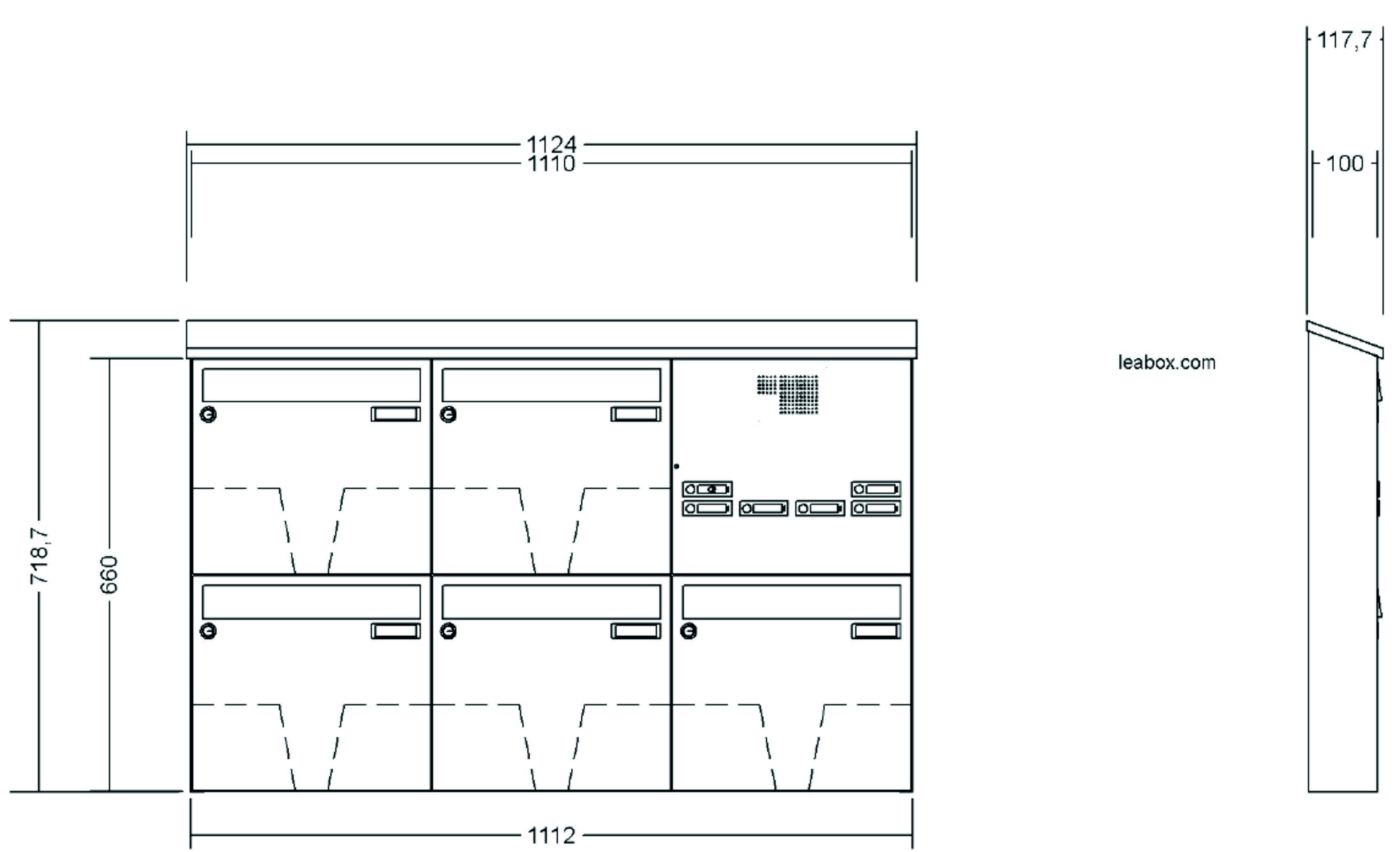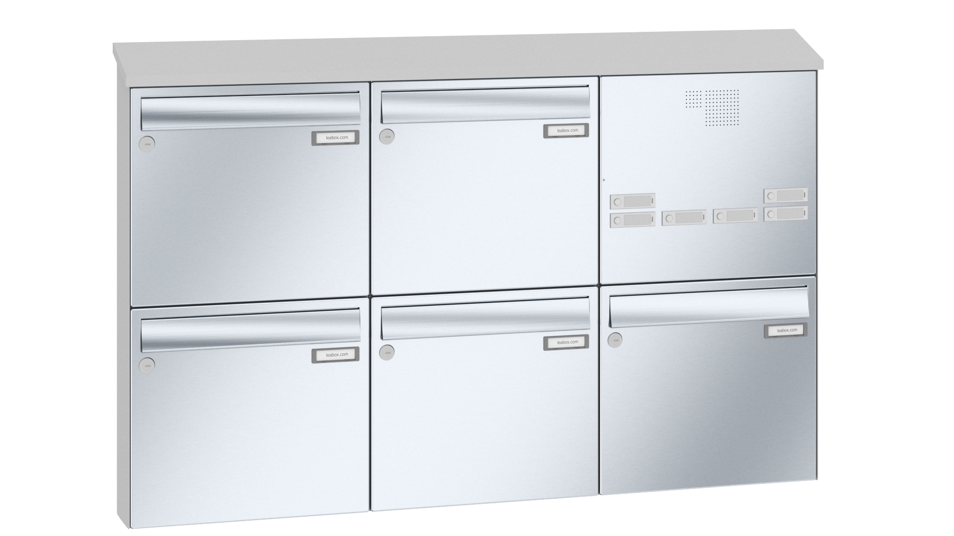 LEABOX - Edelstahl Briefkastenanlage mit LEA 20 Verkleidung inkl. Dachüberstand