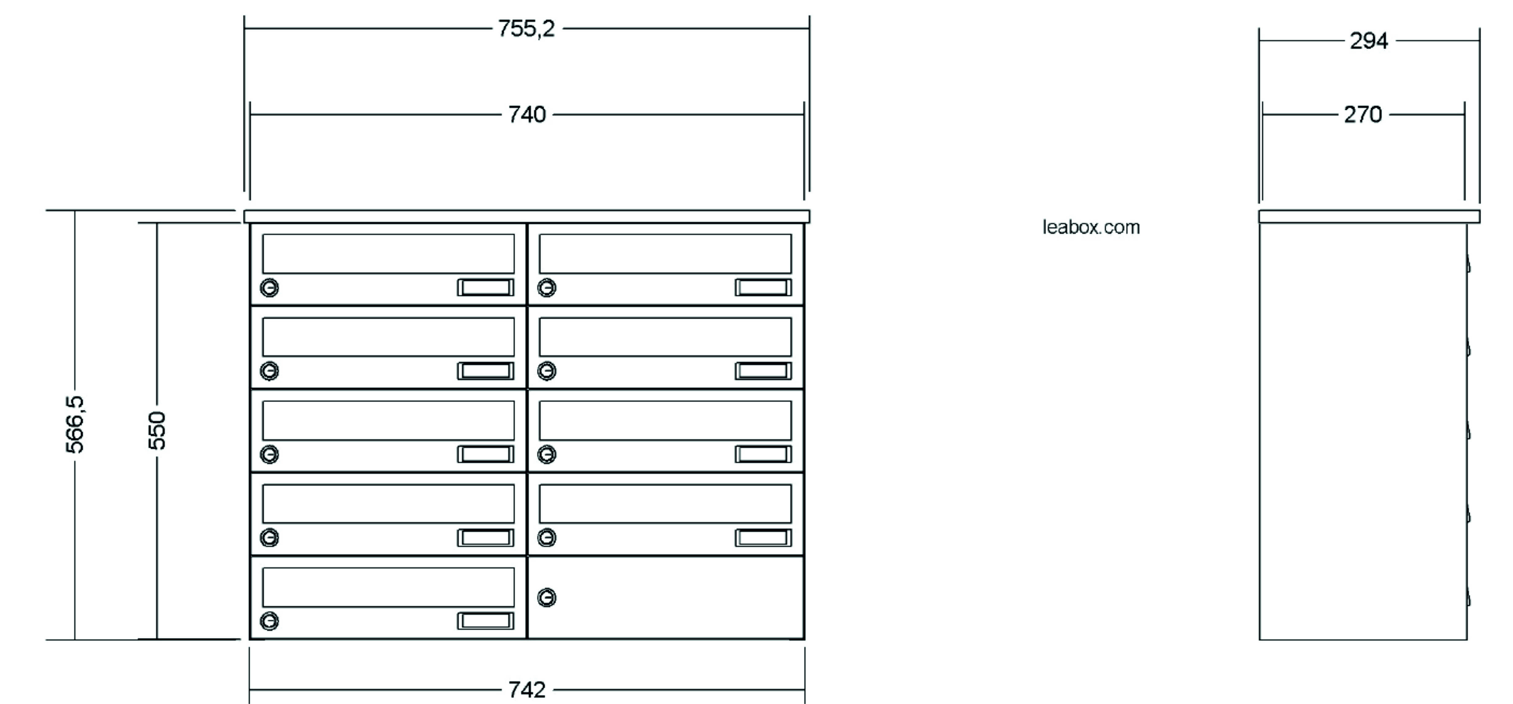 LEABOX - Edelstahl Briefkastenanlage mit LEA 3 Verkleidung inkl. Dachüberstand