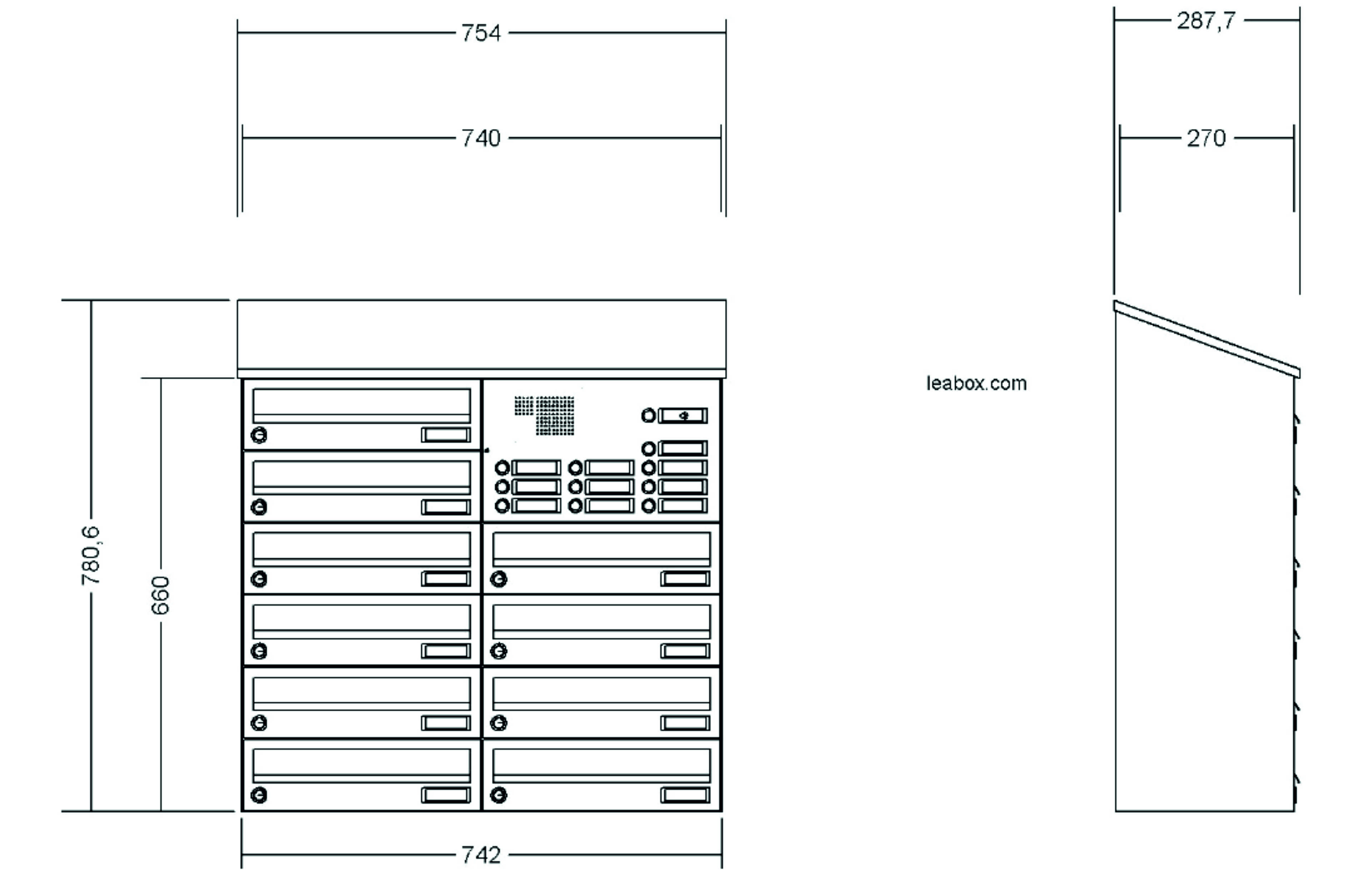 LEABOX - Briefkastenanlage mit LEA 20 Verkleidung inkl. Dachüberstand