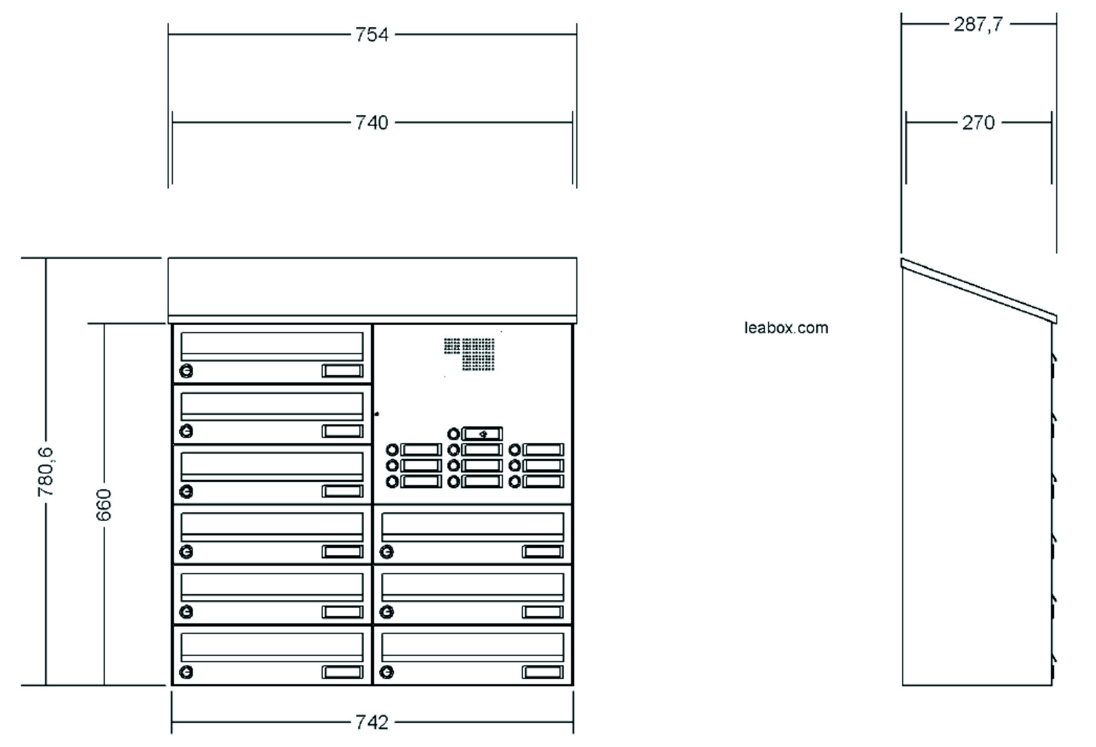 LEABOX - Briefkastenanlage mit LEA 20 Verkleidung inkl. Dachüberstand