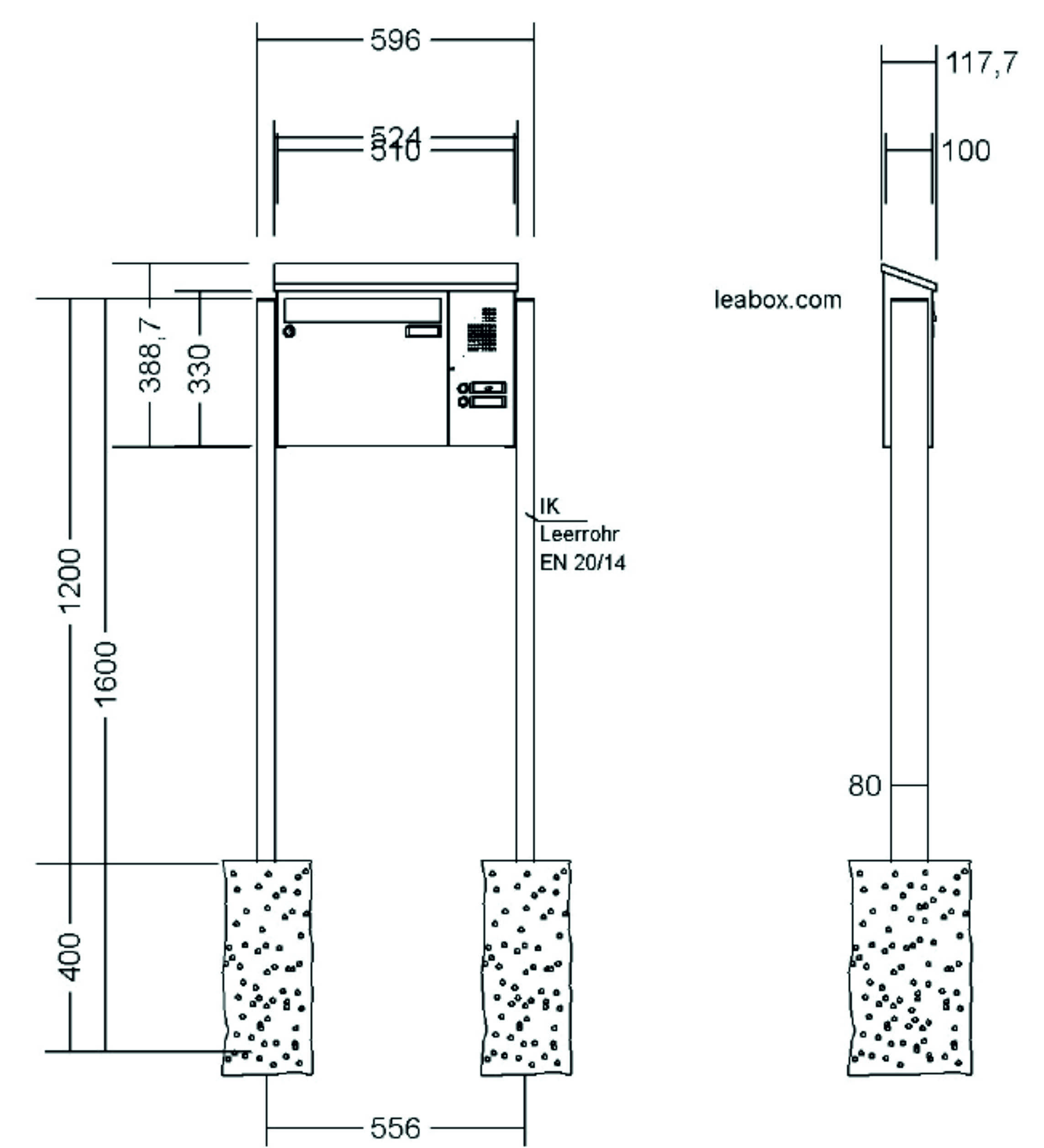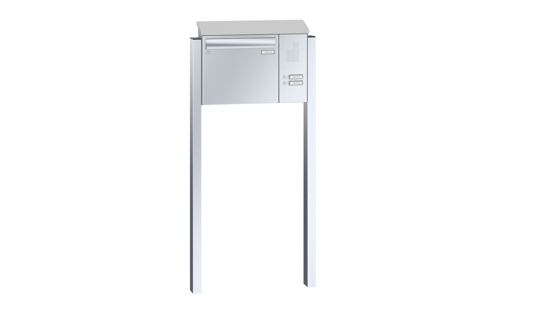 LEABOX - Edelstahl Briefkastenanlage mit LEA 20 Verkleidung inkl. Dachüberstand und rückseitiger Verkleidung und Rechteckrohrständer