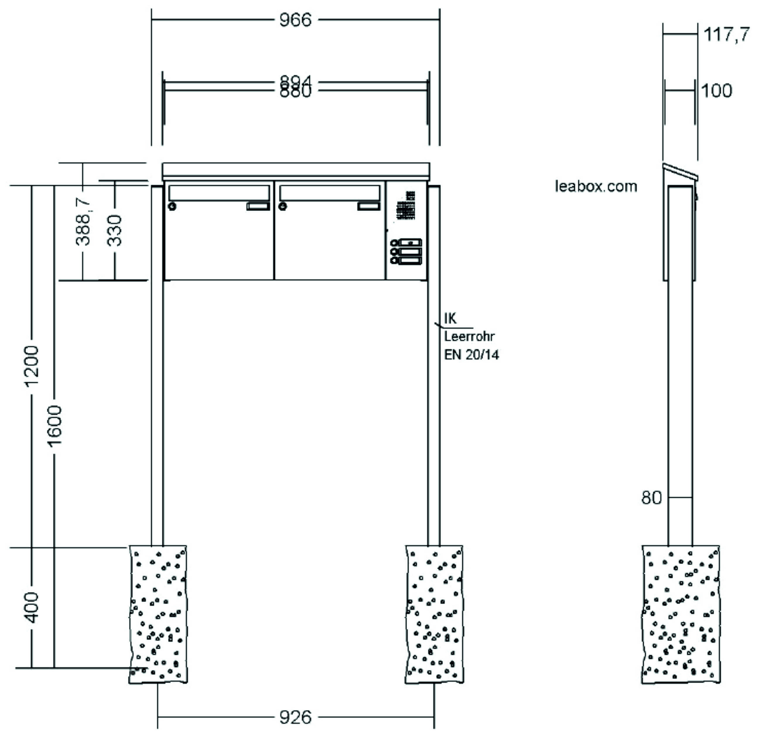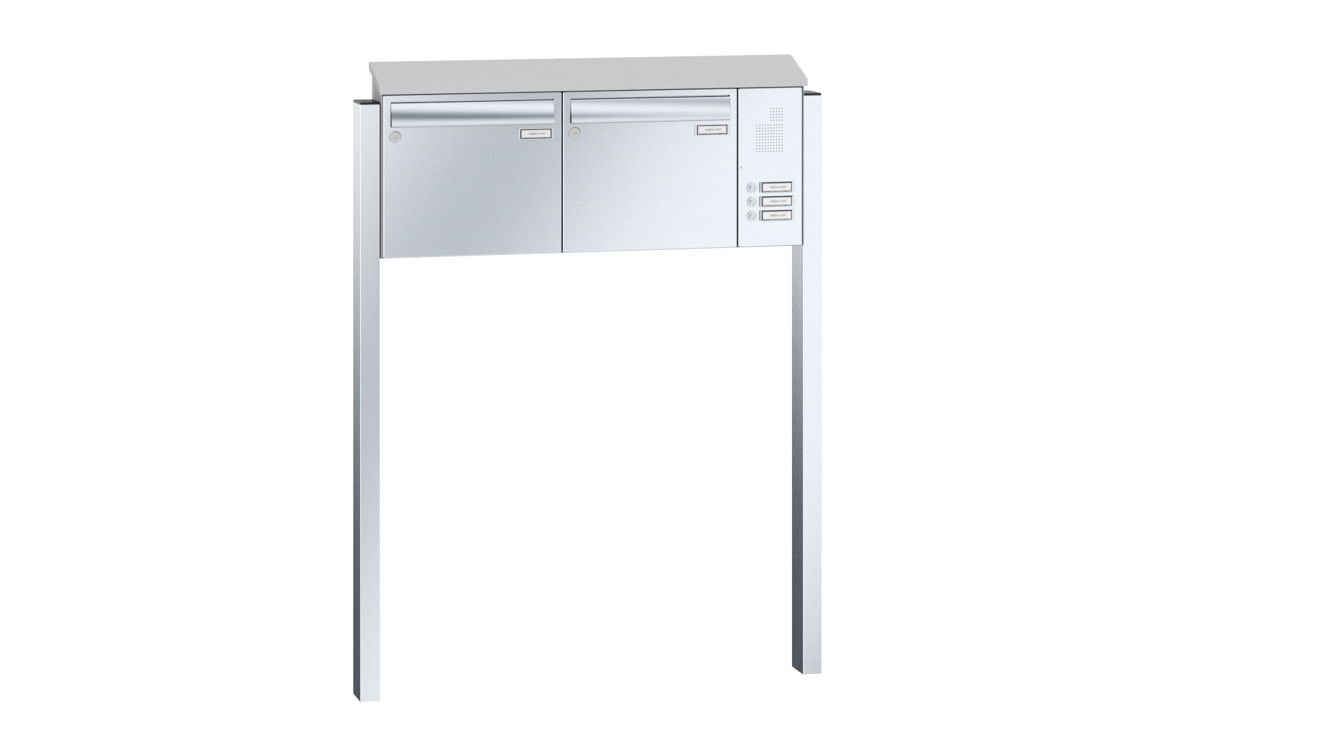 LEABOX - Edelstahl Briefkastenanlage mit LEA 20 Verkleidung inkl. Dachüberstand und rückseitiger Verkleidung und Rechteckrohrständer