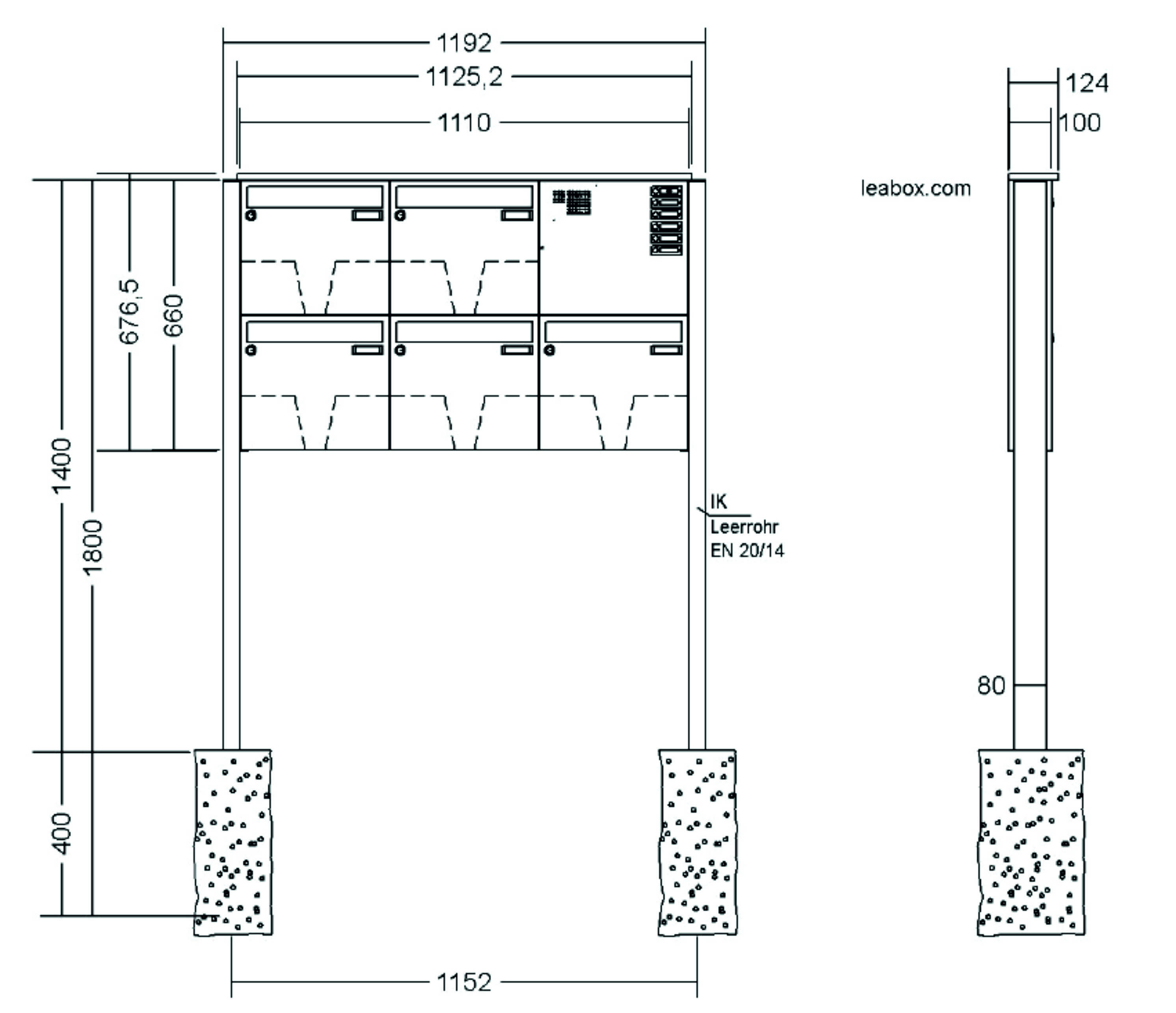 Gesamtanlagenmaß 1192 x 1800 x 124 mm