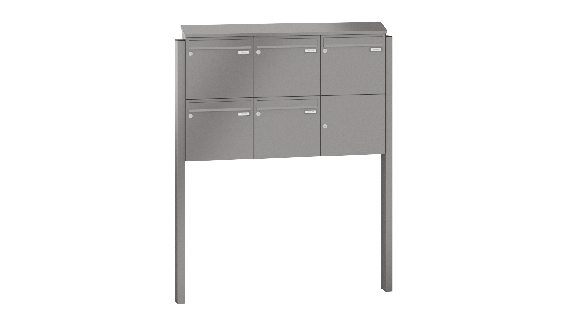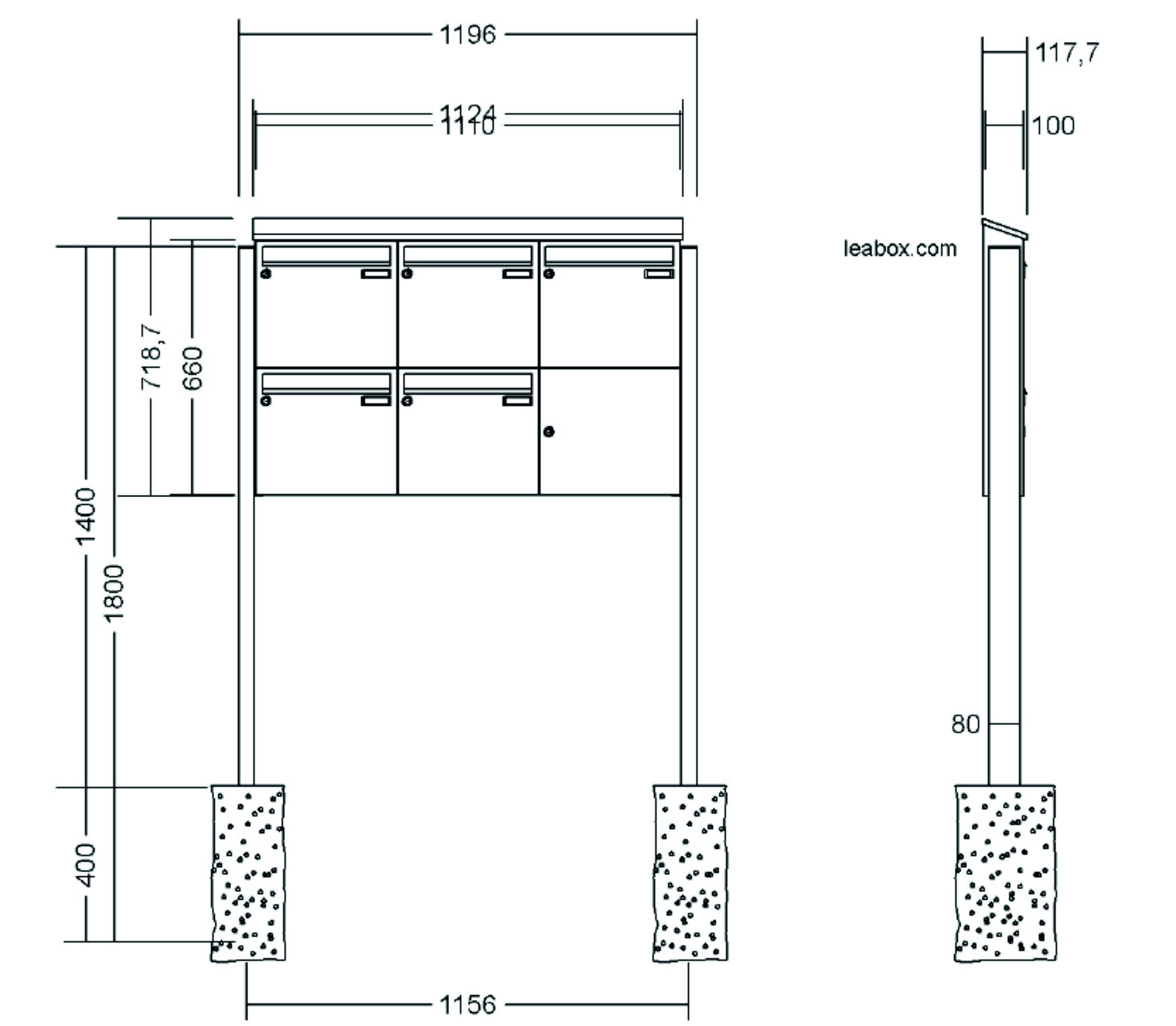 LEABOX - Briefkastenanlage mit LEA 20 Verkleidung inkl. Dachüberstand und rückseitiger Verkleidung und Rechteckrohrständer