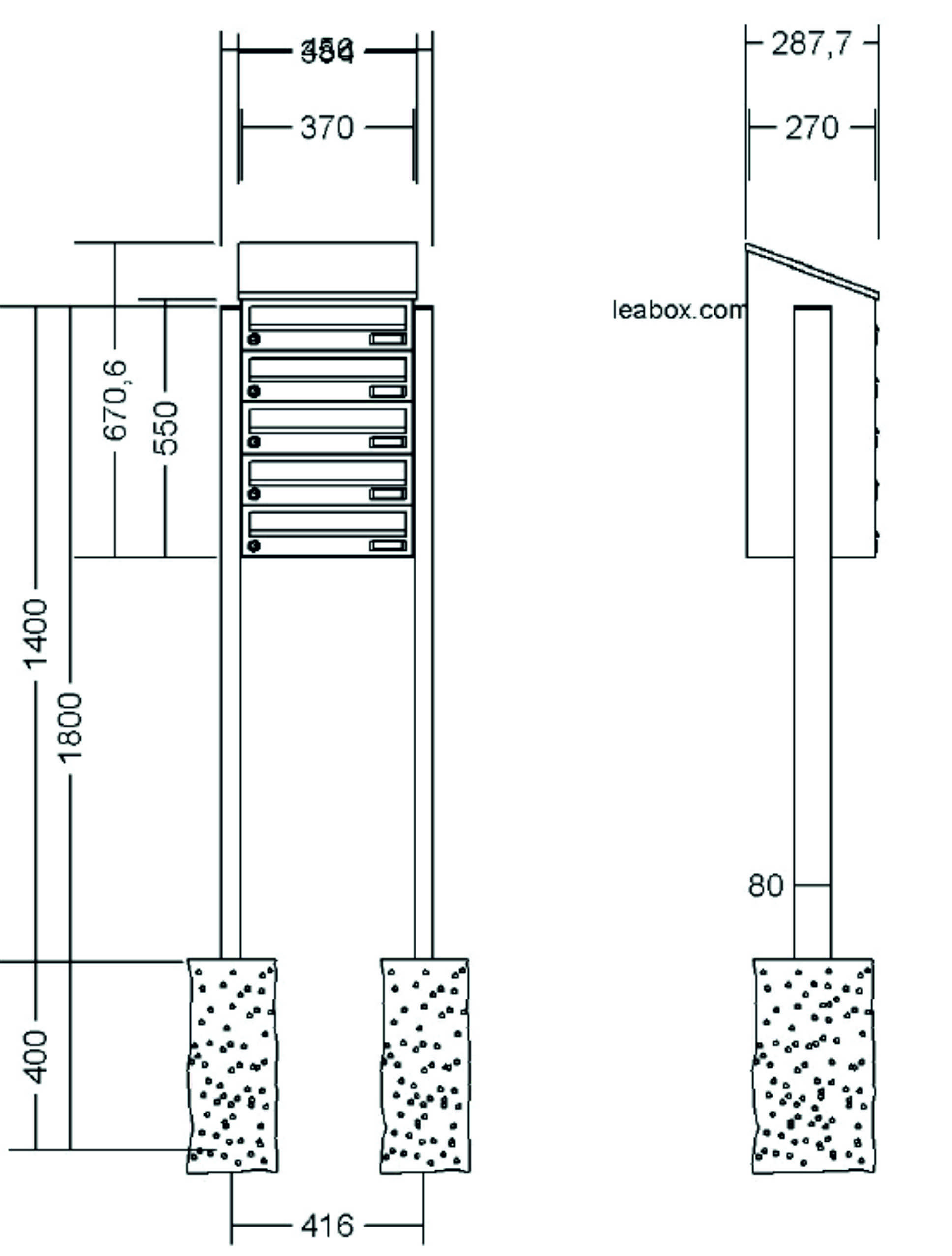LEABOX - Briefkastenanlage mit LEA 20 Verkleidung inkl. Dachüberstand und rückseitiger Verkleidung und Rechteckrohrständer