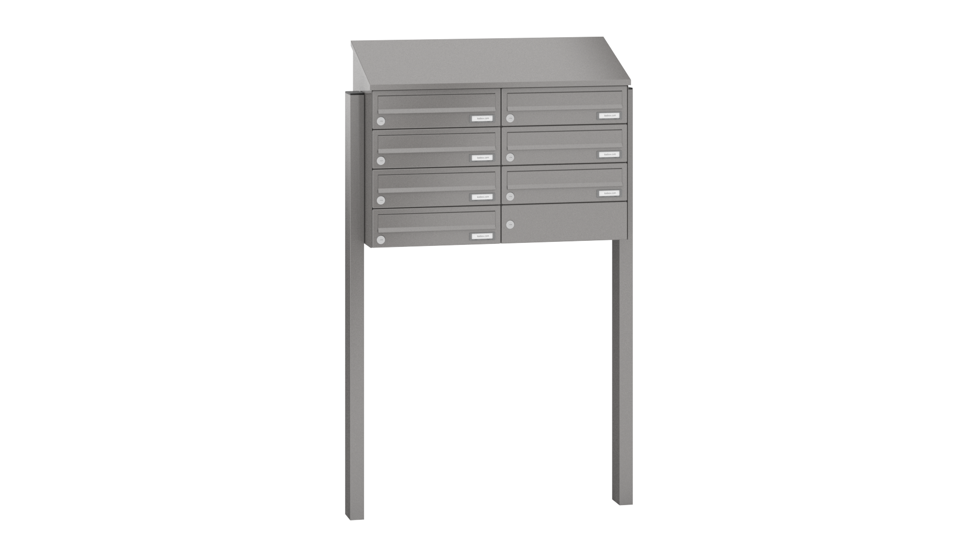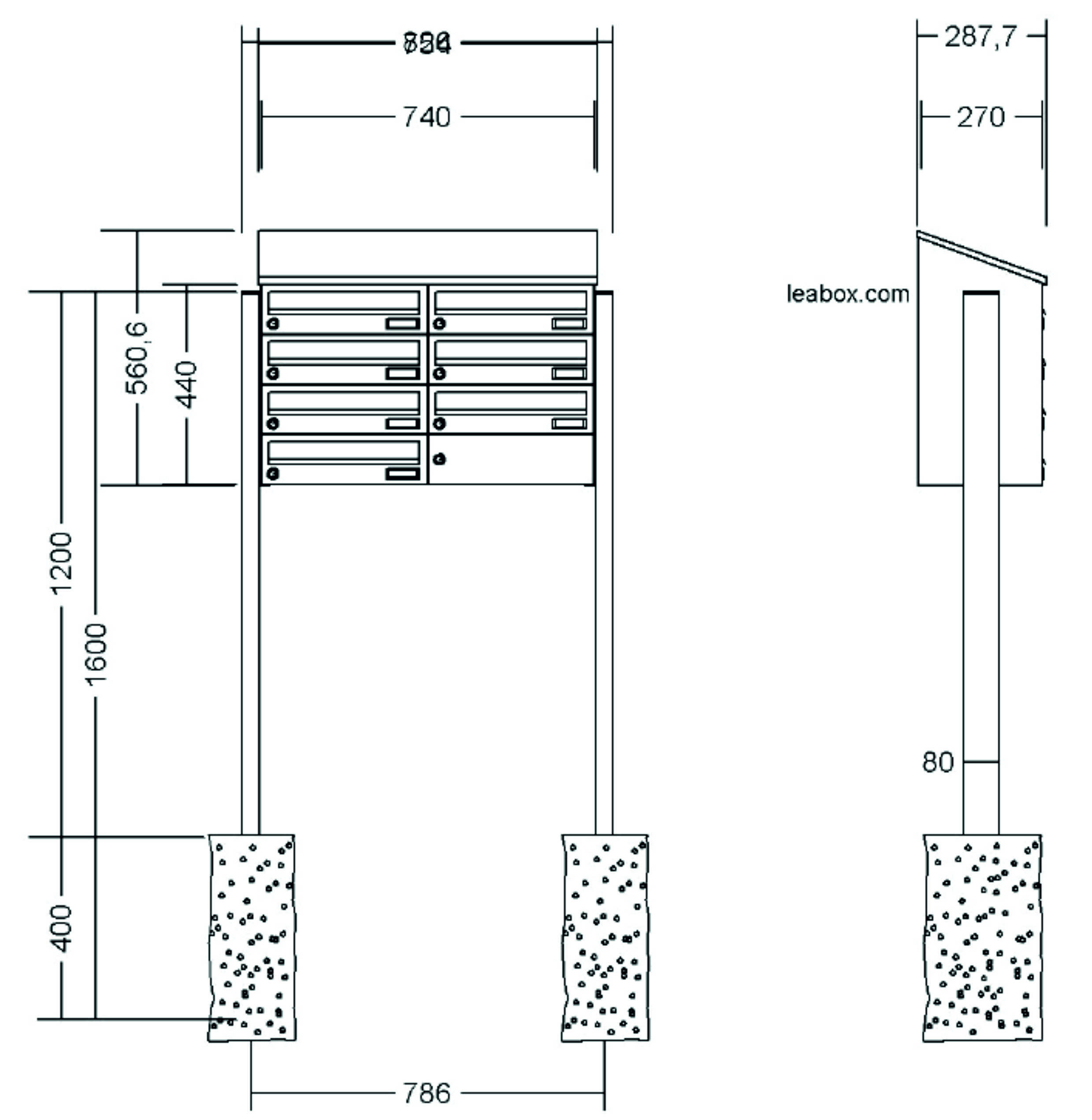 LEABOX - Briefkastenanlage mit LEA 20 Verkleidung inkl. Dachüberstand und rückseitiger Verkleidung und Rechteckrohrständer