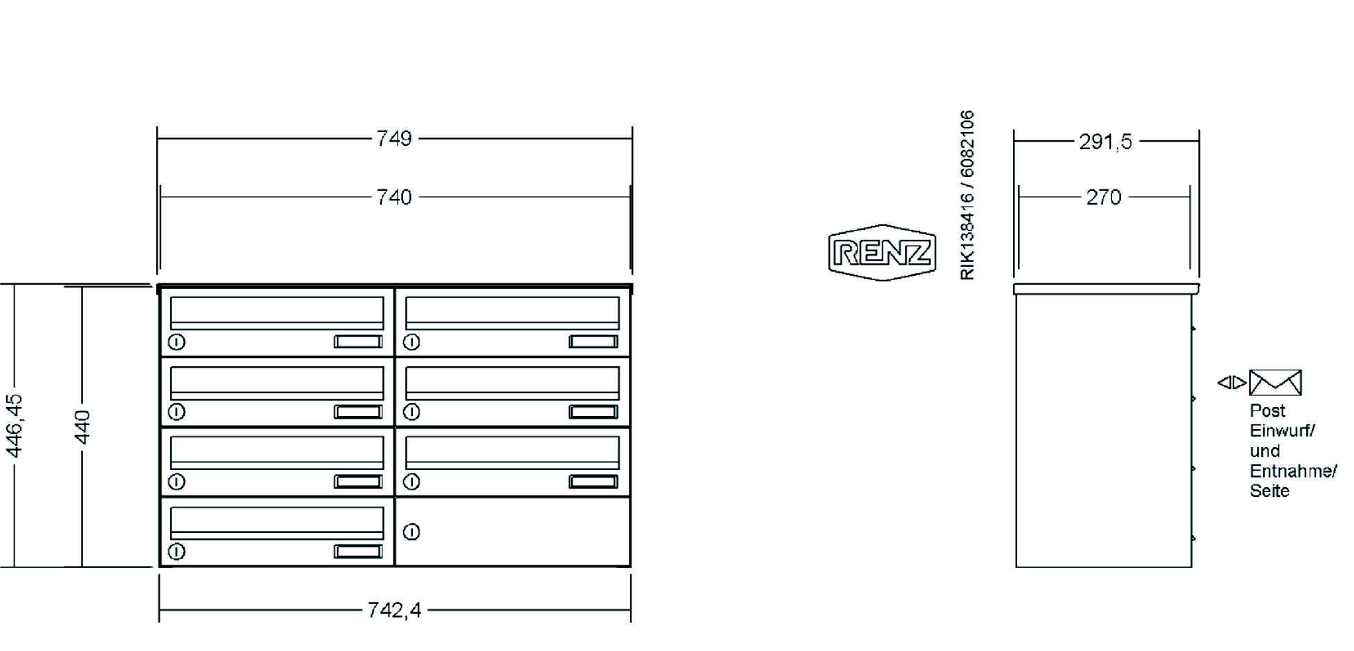 RENZ - Aufputz-Briefkastenanlage Classic mit Basic B