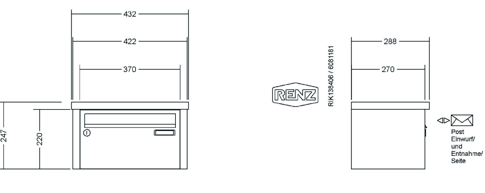 RENZ - Briefkastenanlage mit Tetro-Verkleidung mit Dach, Regenschutzüberstand