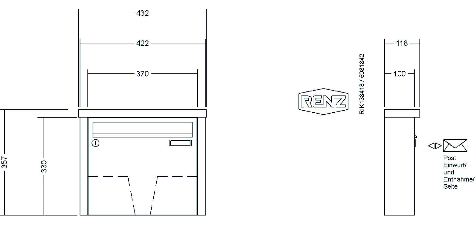 RENZ - Briefkastenanlage mit Tetro-Verkleidung mit Dach, Regenschutzüberstand