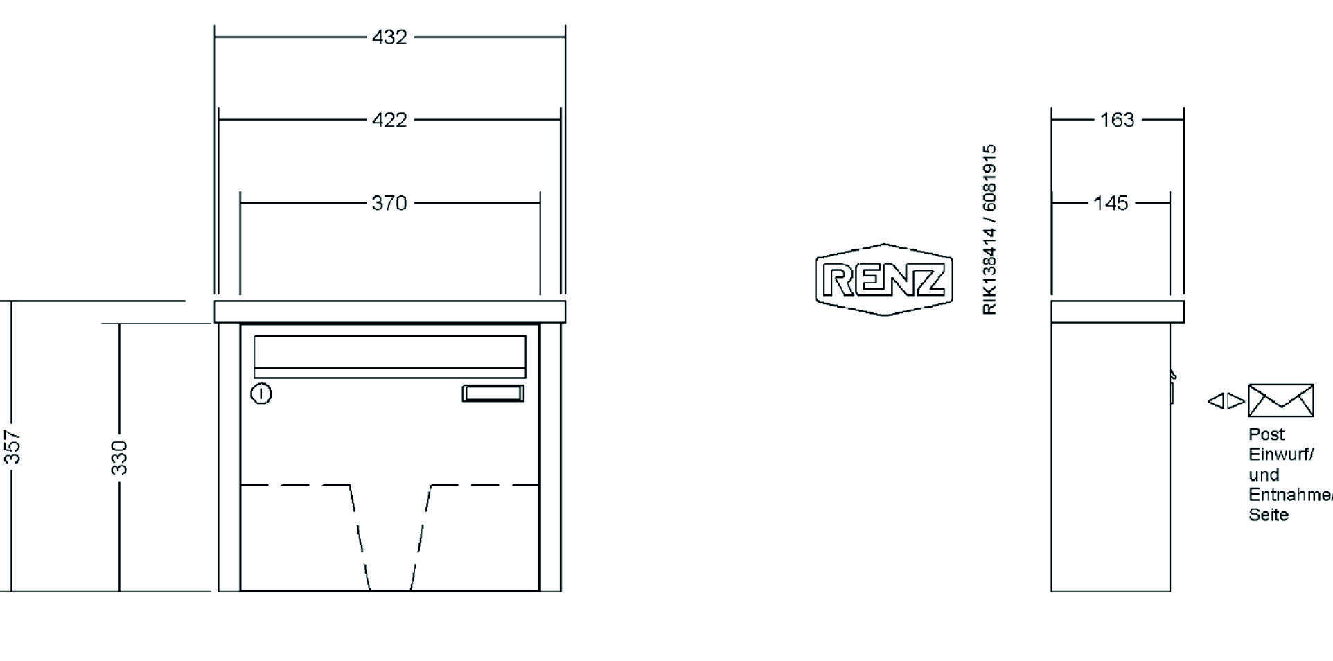 RENZ - Briefkastenanlage mit Tetro-Verkleidung mit Dach, Regenschutzüberstand