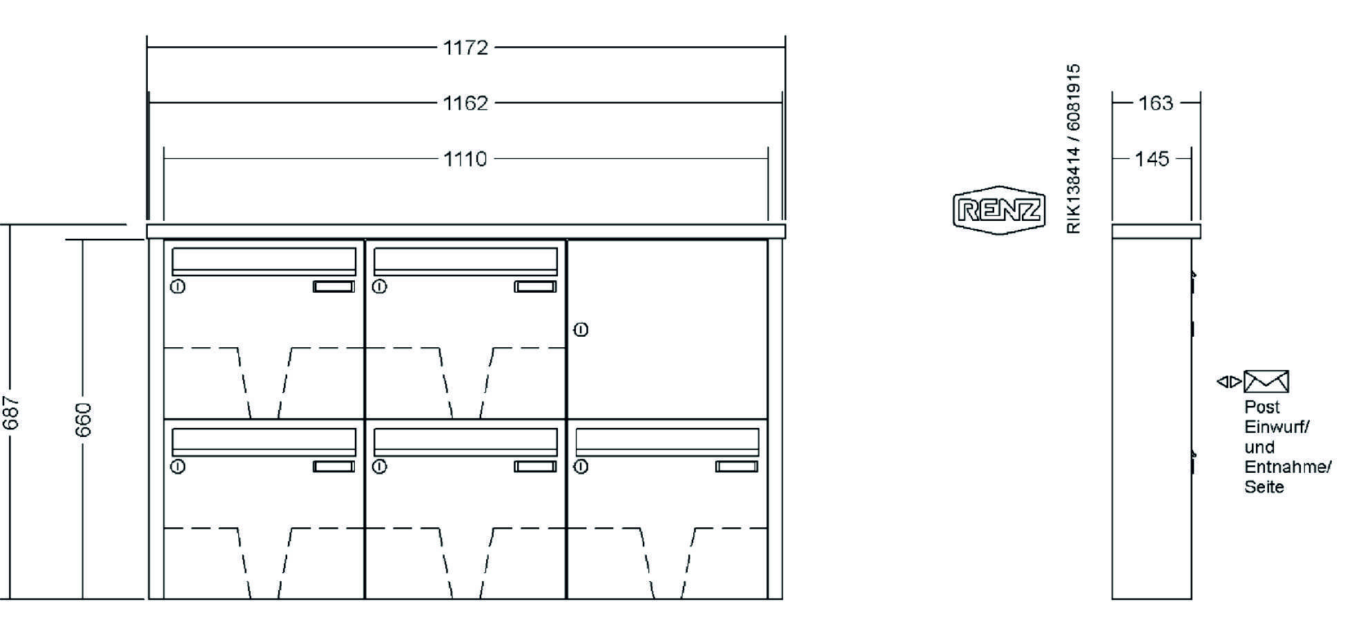 RENZ - Briefkastenanlage mit Tetro-Verkleidung mit Dach, Regenschutzüberstand