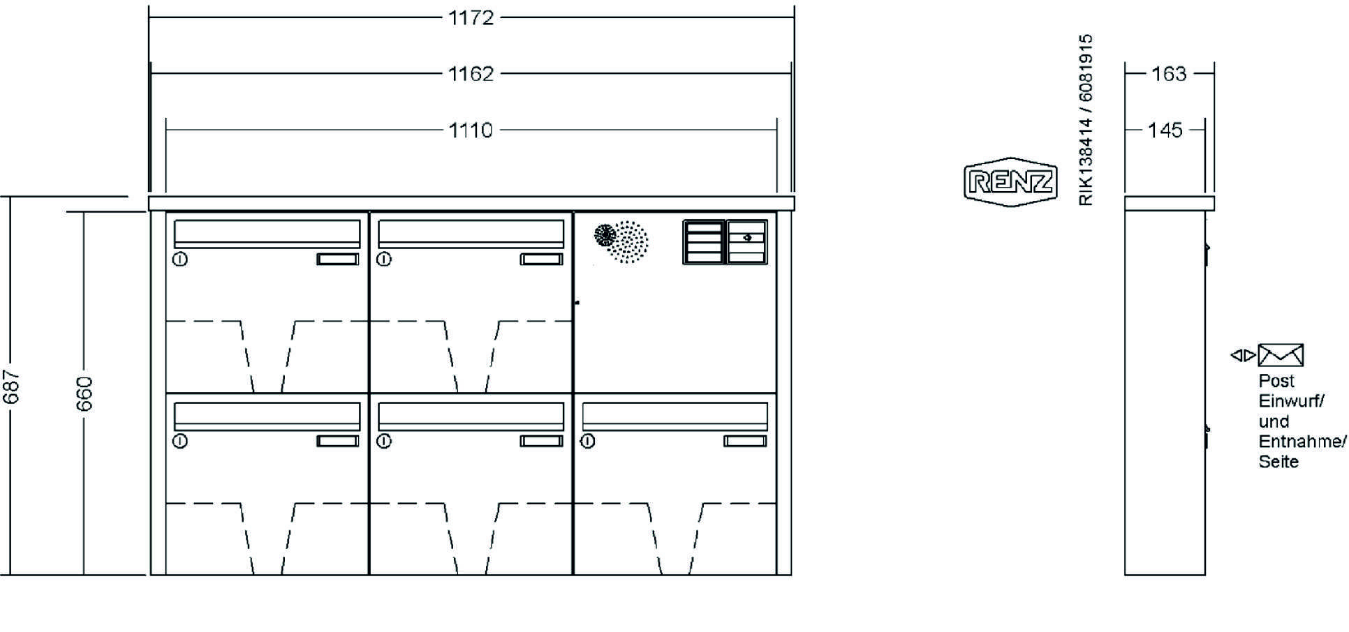 RENZ - Briefkastenanlage mit Tetro-Verkleidung mit Dach, Regenschutzüberstand