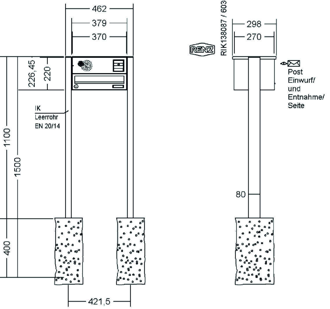 RENZ - Briefkastenanlage mit 3-seitiger Basic B Verkleidung inkl. Dachüberstand, rückseitiger Verkleidung