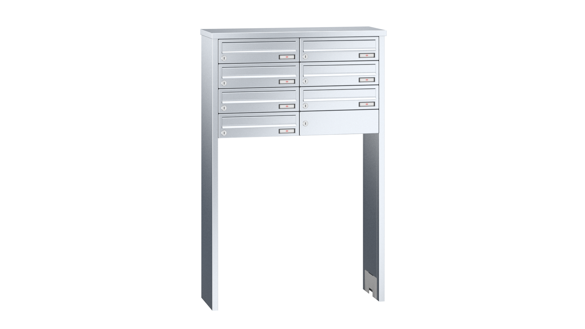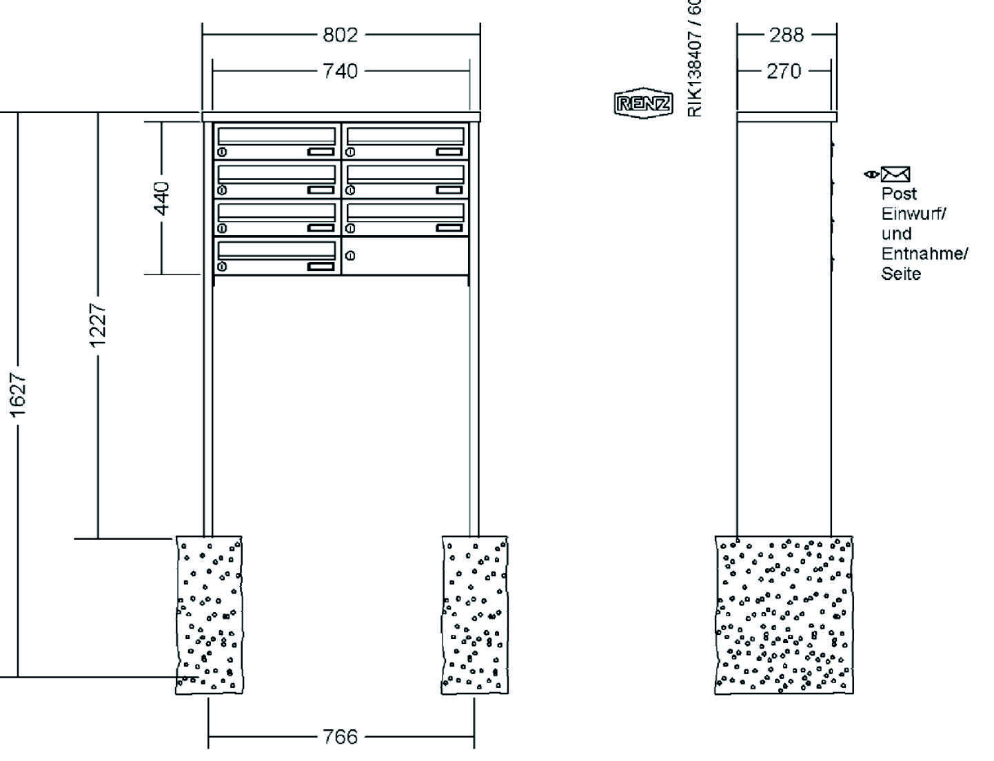 RENZ - Briefkastenanlage mit Tetro-Verkleidungsgestell mit Dach, Regenschutzüberstand und rückseitiger Verkleidung