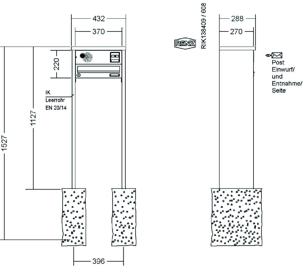 RENZ - Briefkastenanlage mit Tetro-Verkleidungsgestell mit Dach, Regenschutzüberstand und rückseitiger Verkleidung