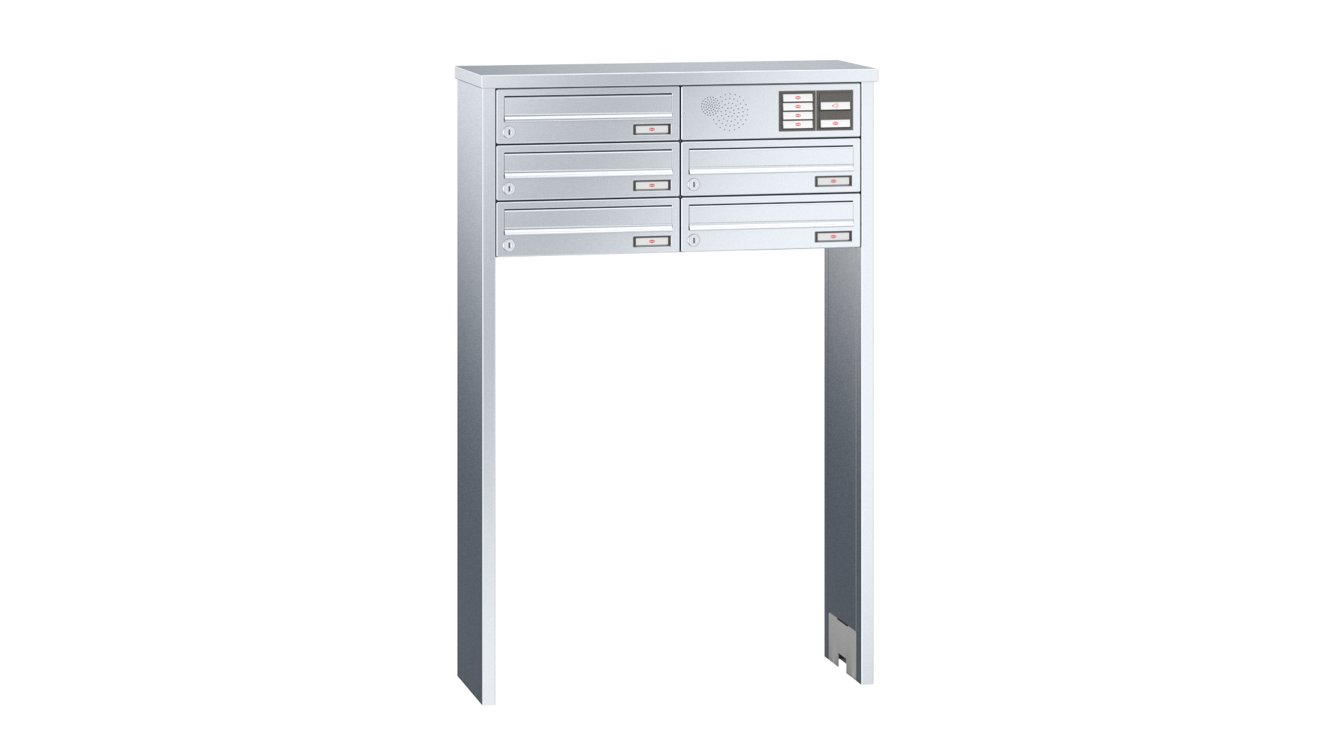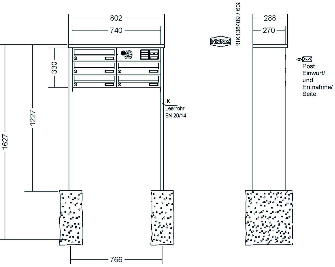 RENZ - Briefkastenanlage mit Tetro-Verkleidungsgestell mit Dach, Regenschutzüberstand und rückseitiger Verkleidung