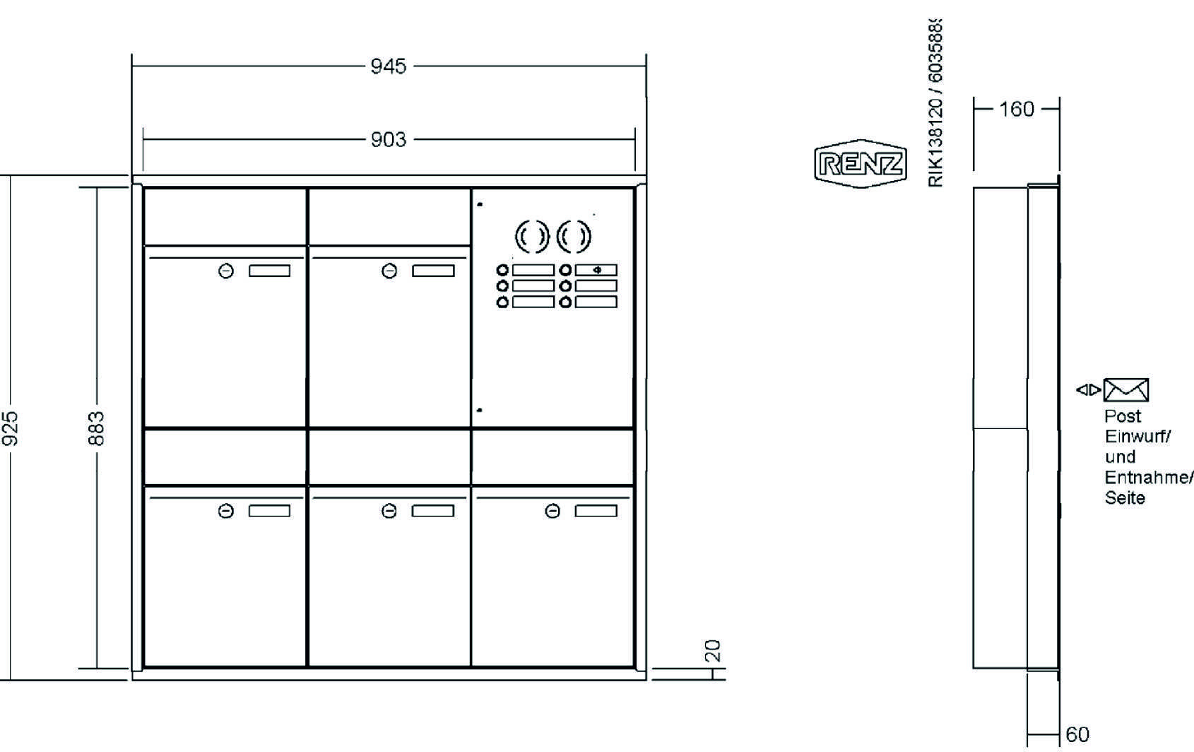 RENZ Plan - Unterputz-Briefkastenanlage Renz Plan