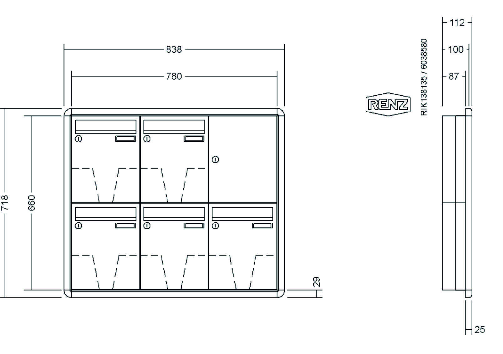 RENZ - Unterputz-Briefkastenanlage mit RS3000 Putzabdeckrahmenprofil