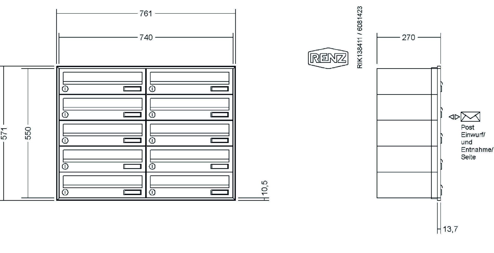 RENZ - Unterputz-Briefkastenanlage mit Schattenfugenrahmen