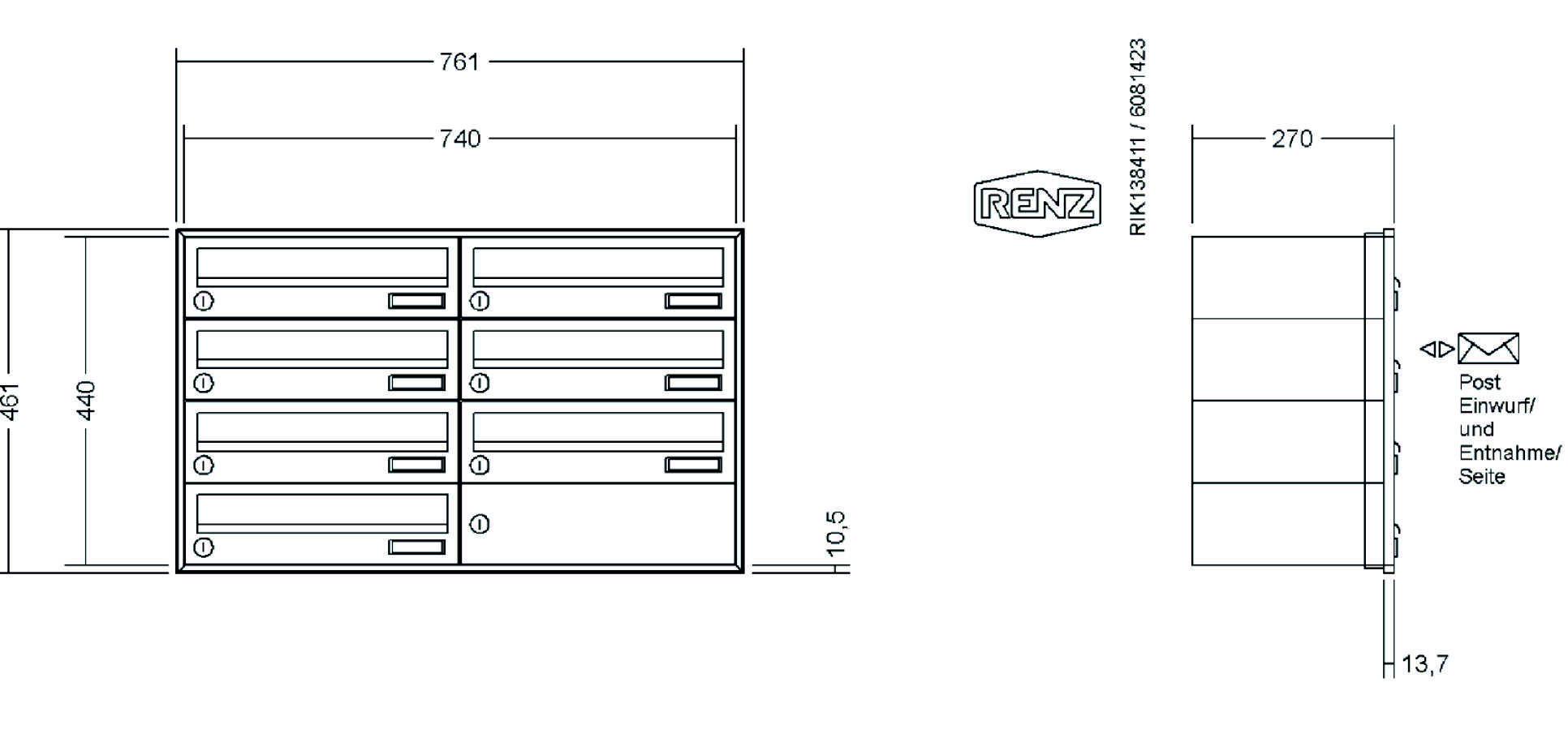 RENZ - Unterputz-Briefkastenanlage mit Schattenfugenrahmen