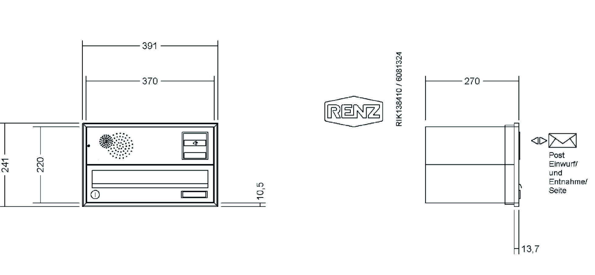 RENZ - Unterputz-Briefkastenanlage mit Schattenfugenrahmen