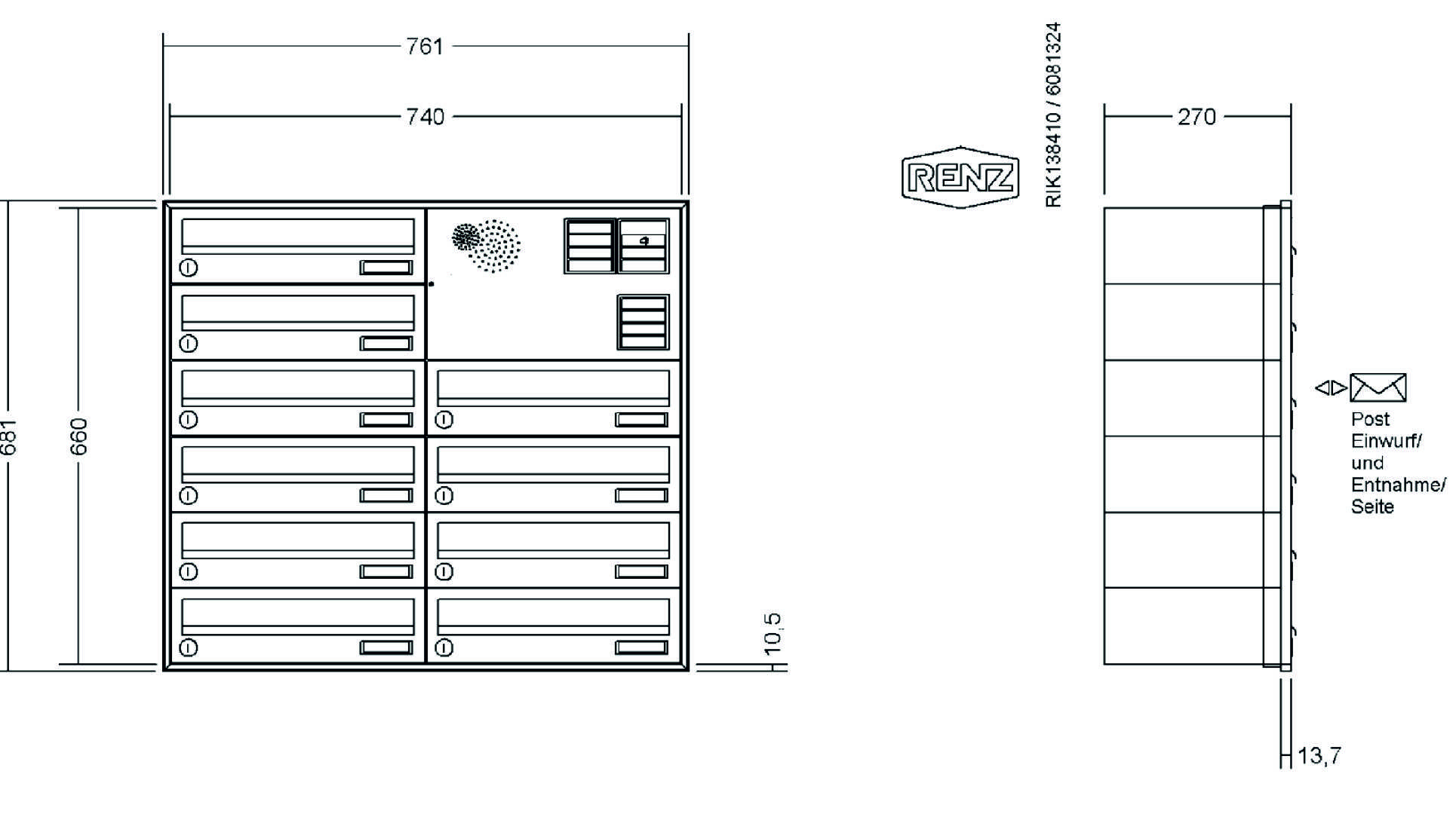RENZ - Unterputz-Briefkastenanlage mit Schattenfugenrahmen